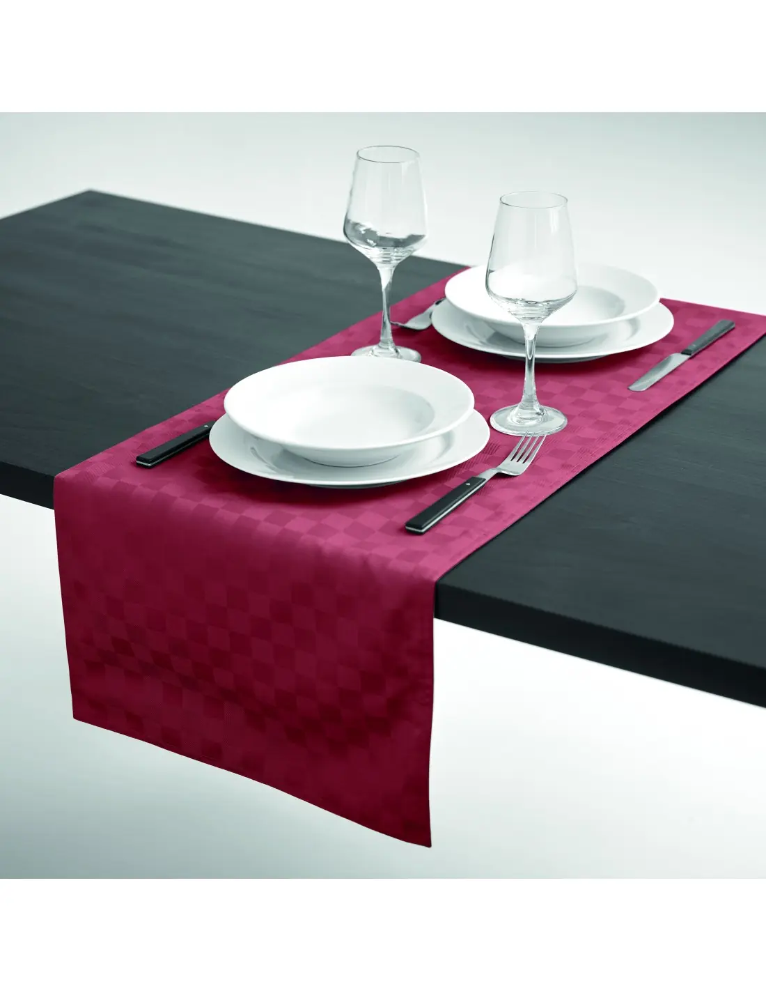 Camino de mesa en poliéster 185 gr/m² con microfibra y forro no tejido con acabado repelente al agua en la cara frontal. Dimensiones: 1,40x0,40 m.