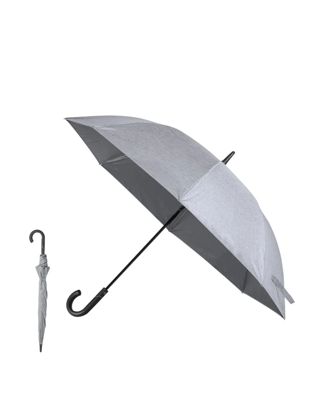 Paraguas de alta calidad y 130cm de diámetro, fabricado en material poliéster 150D y en elegante tono gris jaspeado. Apertura automática y varillas...