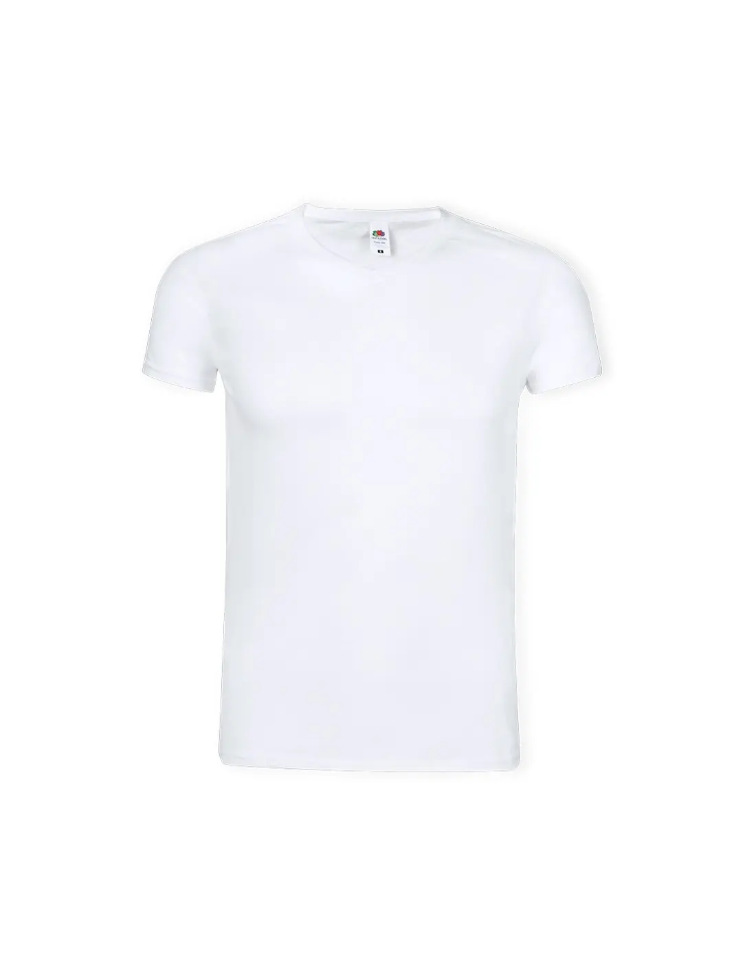 Camiseta para adulto blanca Iconic V-Neck de Fruit Of The Loom. Fabricada en material 100% algodón peinado Ring Spun de 140g/m2. De tacto suave y corte moderno, con cuello en pico estrecho de canalé 1x1 y tapeta a juego. Etiqueta fácilmente removible y disponible en tallas S, M, L, XL, XXL.