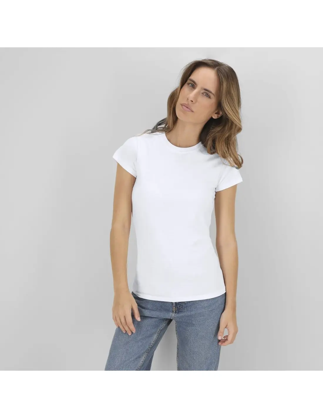 Camiseta para mujer Keya WCS150. En material 100% algodón de 150g/m2. Disponible en color blanco y en tallas S, M, L, XL, XXL.