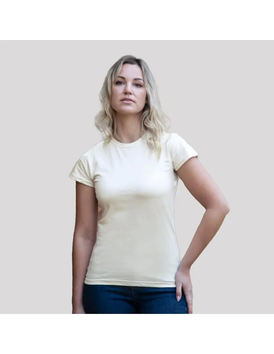 Camiseta para mujer Keya Oranic Natural. En material 100% algodón orgánico single jersey de 150g/m2 y acabado natural. Distintivo organic en etiqueta. Disponible en tallas S,M,L,XL,XXL.