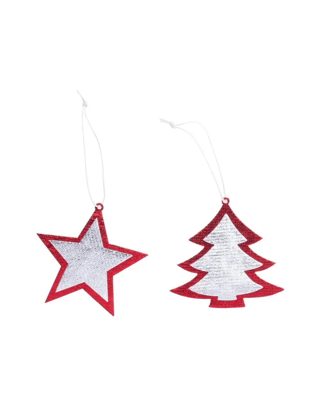 Set de figuras navideñas para colgar en material non-woven. Incluye árbol de navidad y estrella.