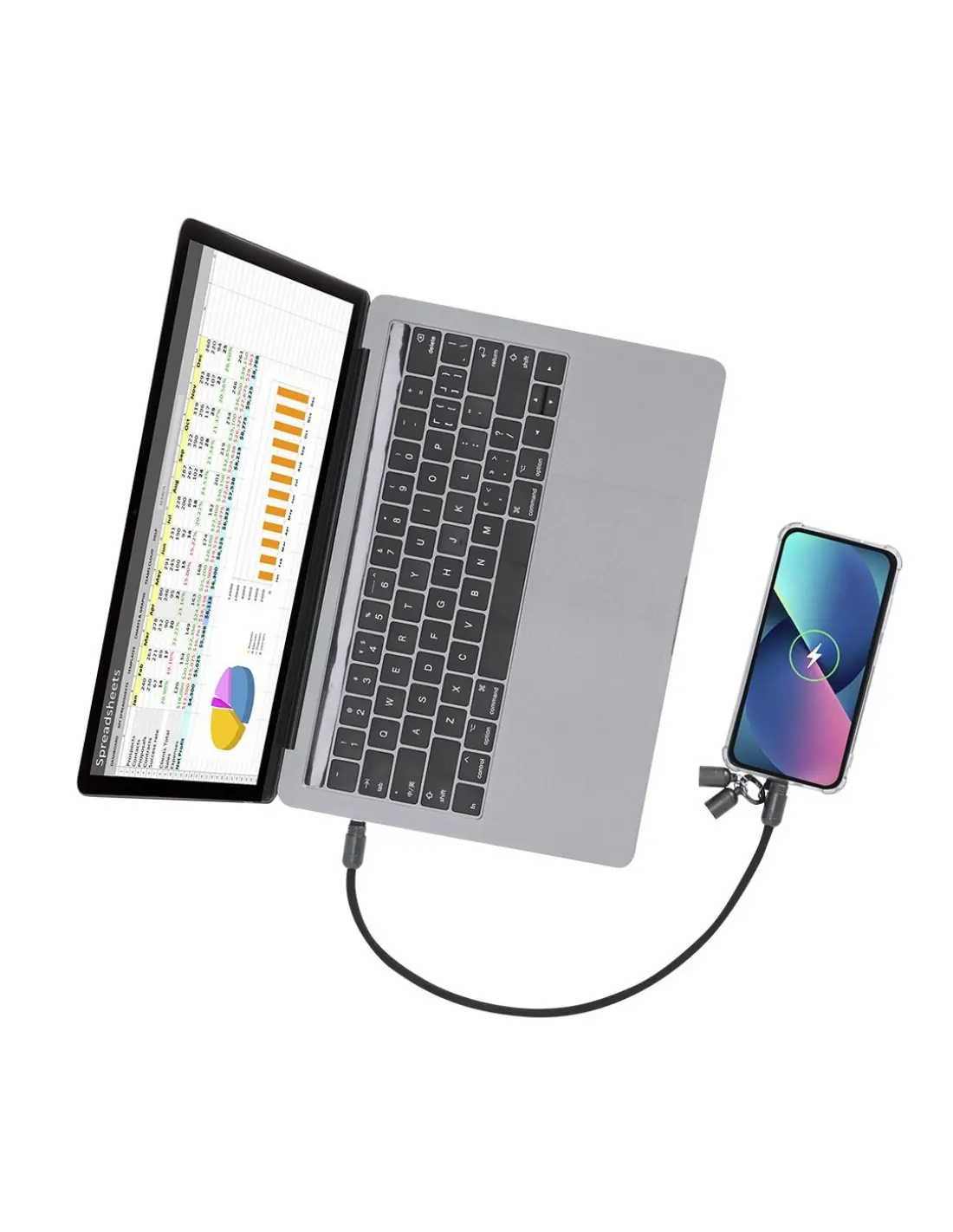 Lanyard cable de carga con función de transferencia de datos y soporte para móvil. Con entrada/salida Tipo C y capacidad de 60W , lo que permite...