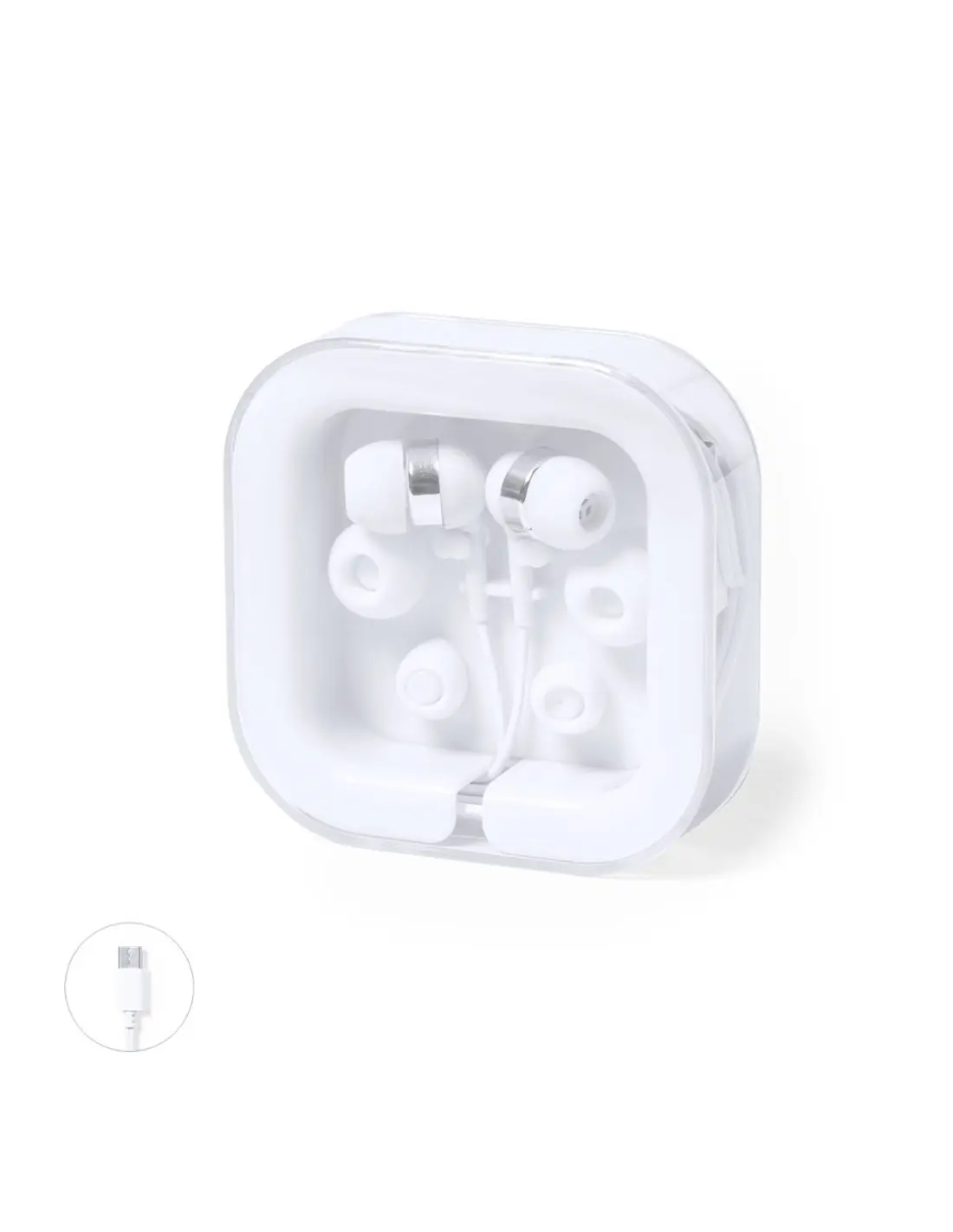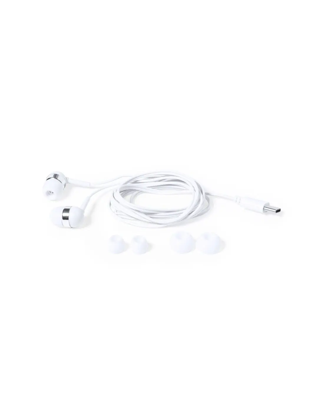 Prácticos y confortables auriculares intraurales con conexión Tipo C. En acabado blanco y con detalles en cromado, incluidos 3 pares de almohadillas...