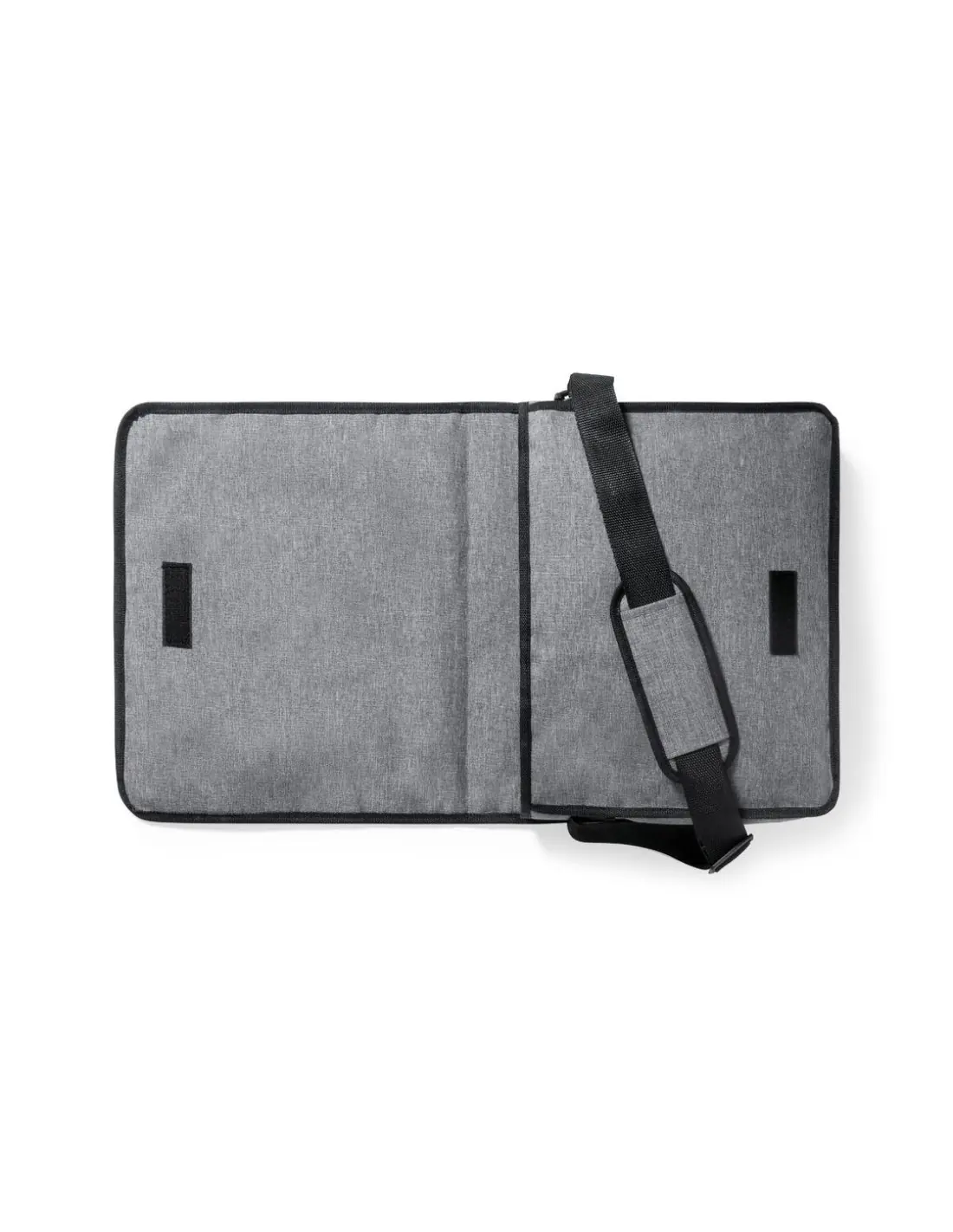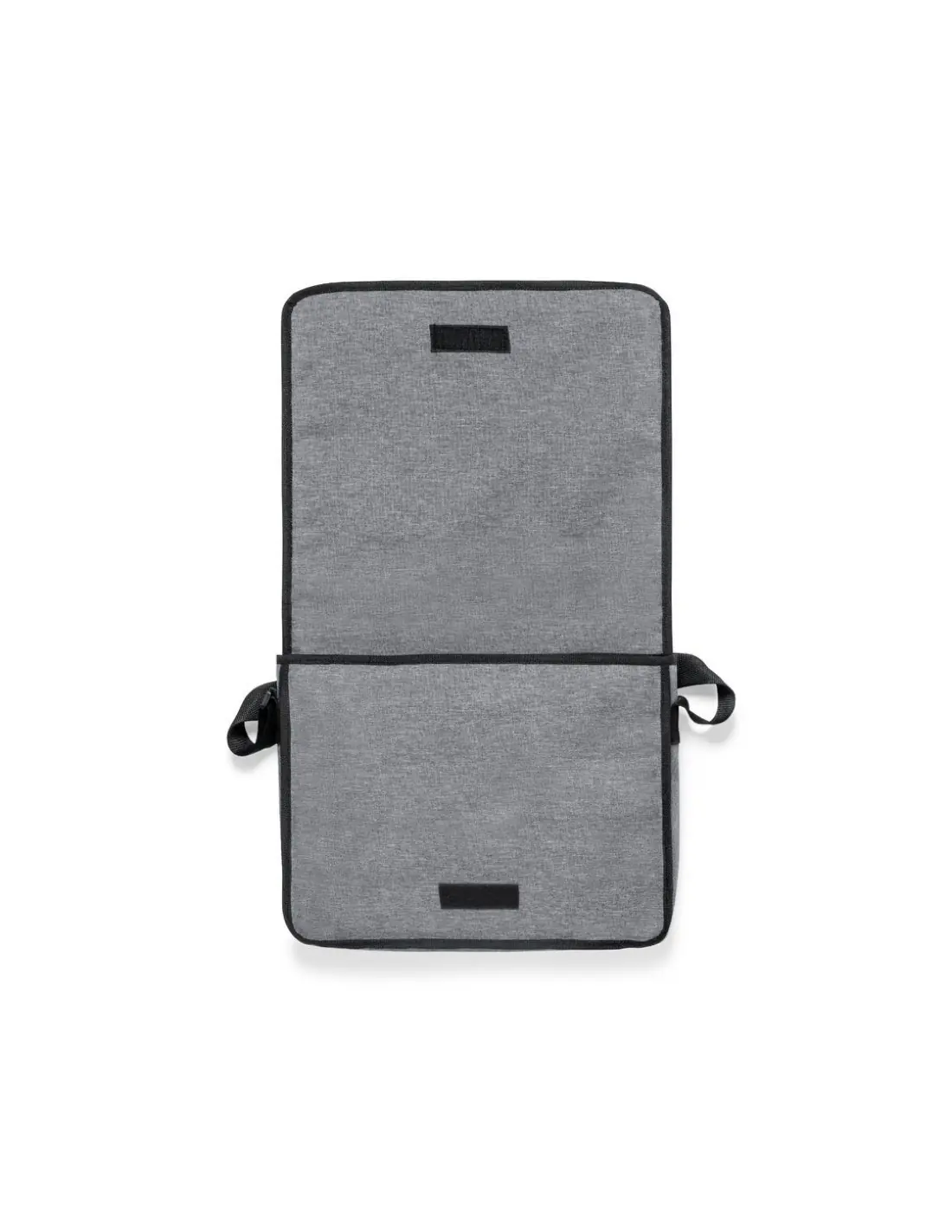 Bandolera fabricada en resistente poliéster 600D RPET. Completamente acolchada, con amplia solapa frontal, cierre de velcro y ribete en negro....