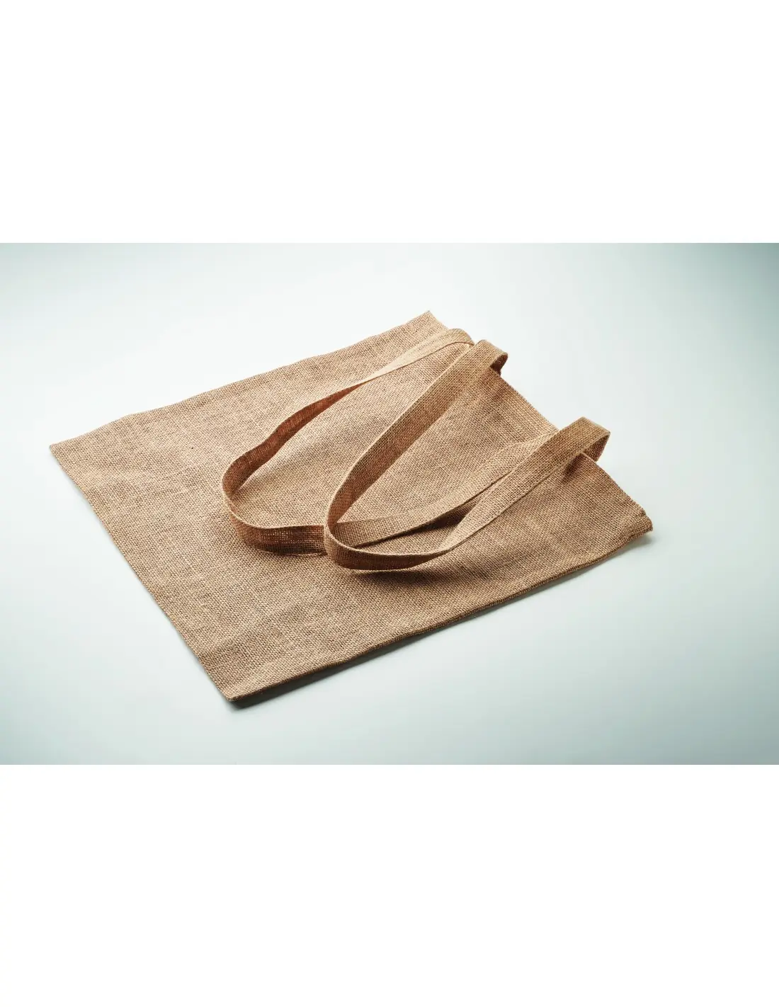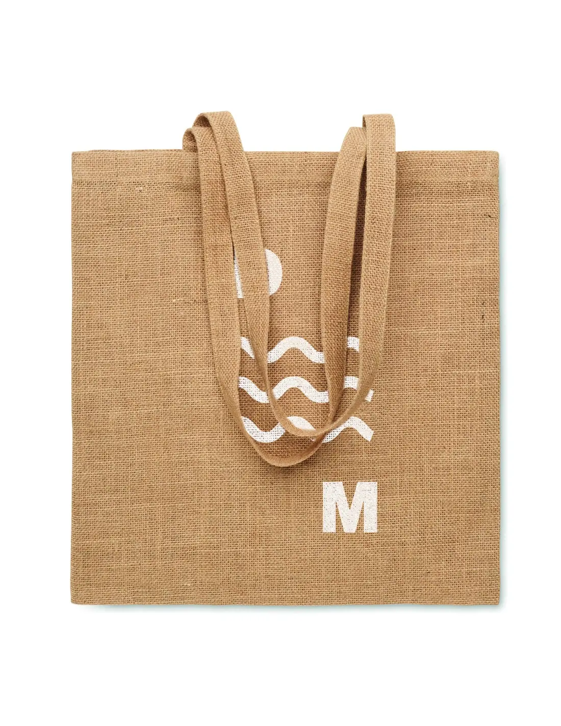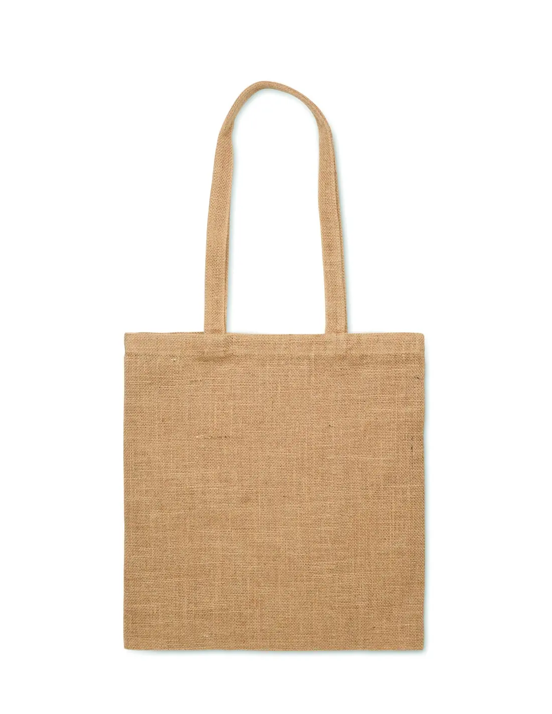 Bolsa de la compra de yute con asas largas. Este producto cuenta con la certificación OEKO-TEX® STANDARD 100.