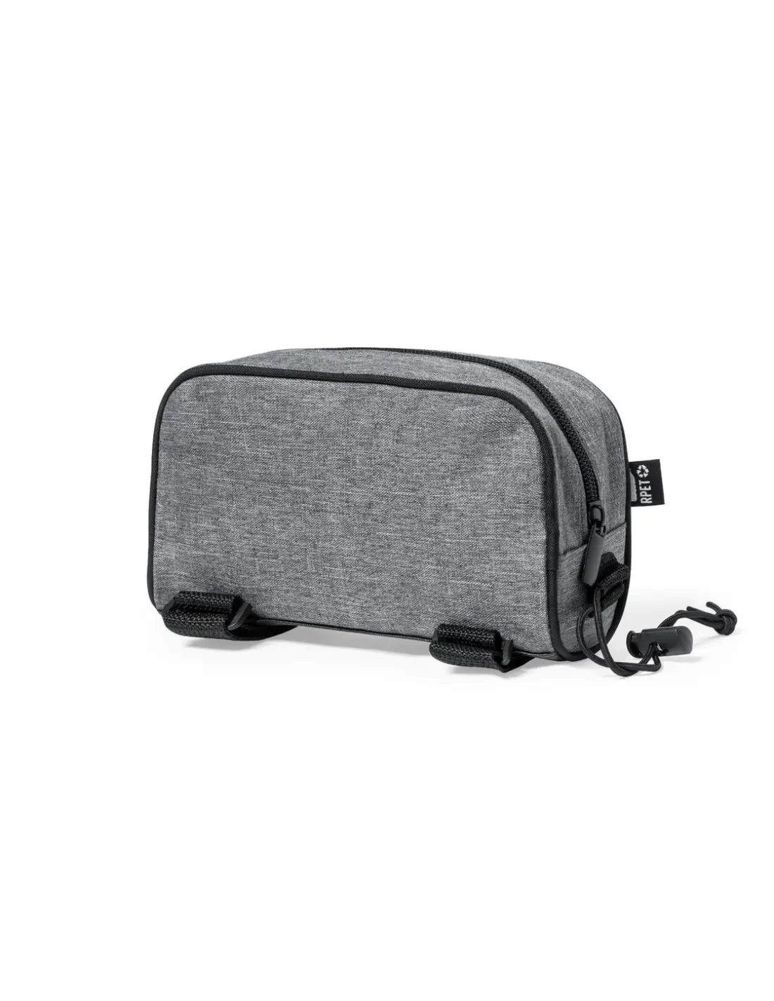 Bolsa para barra de patinete fabricada en resistente 600D RPET. De acabado gris jaspeado.con ribetes de refuerzo y compartimento principal con cierre de cremallera. Incluye doble cinta de ajuste en barra con cierre de velcro y cordón elástico con ajustador. Con distintivo RPET en etiqueta exterior.El material RPET se elabora a partir de plástico reciclado, para así fomentar la reutilización de residuos plásticos y ayudar a la sostenibilidad del planeta.