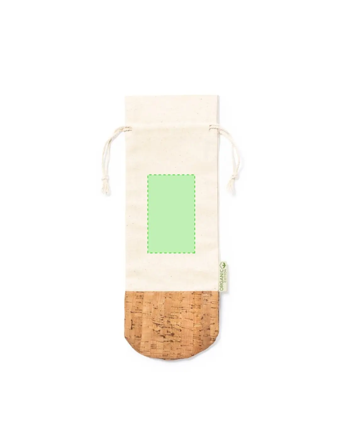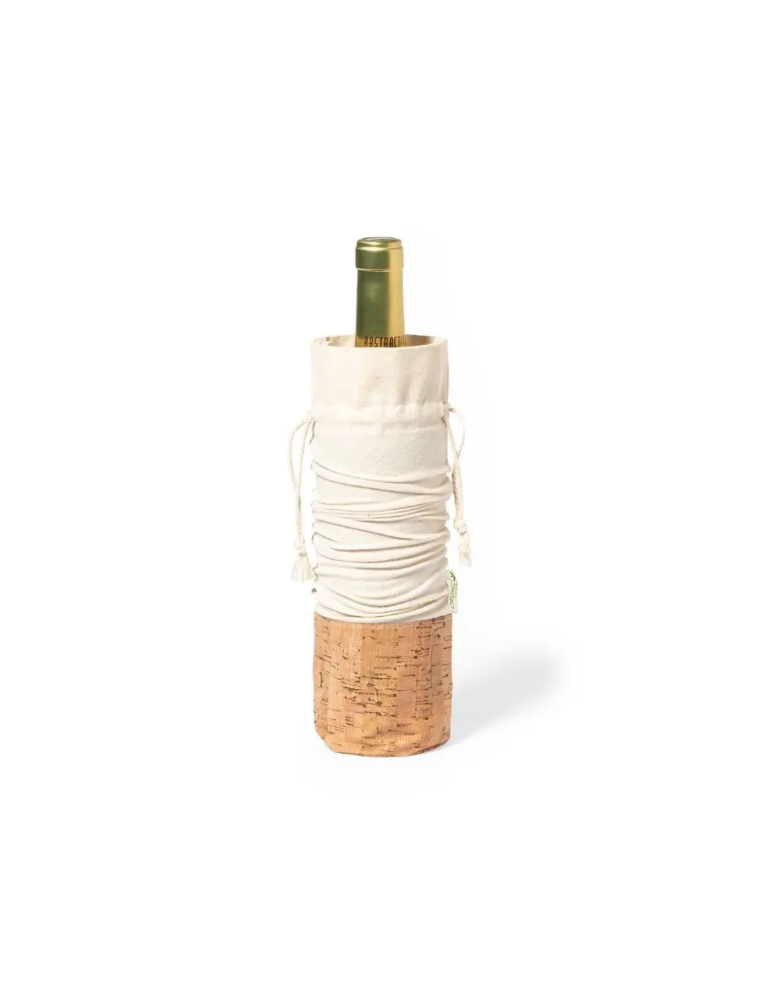 Bolsa para botellas de línea nature. Fabricada en algodón orgánico 100%, con cierre de cordón y base en corcho natural. Ideal para botellas de 750 ml.