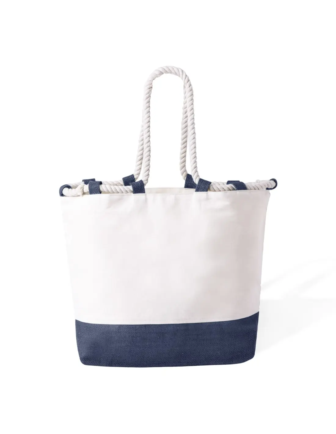 Bolsa fabricada en resistente algodón de 280g/m2. De acabado cosido, con fuelle y asas largas de 50cm reforzadas, de color blanco en forma de cuerda. Disponible en variada gama de colores bicolor, con resistencia hasta 10kg de peso.
