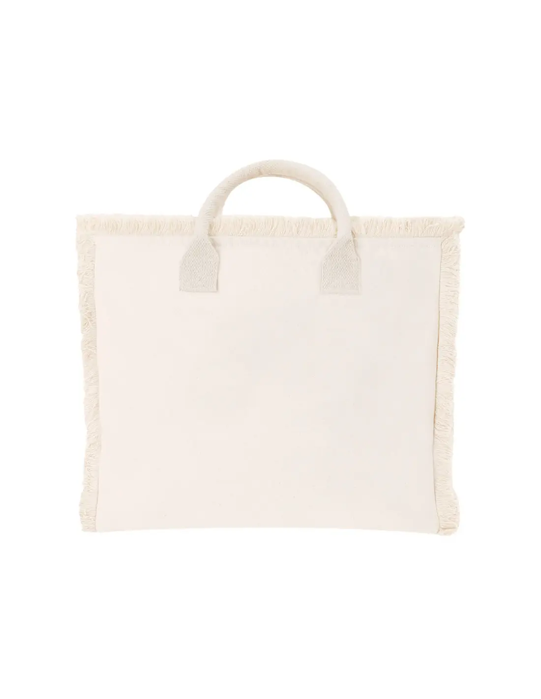 Bolsa con estilo flecos confeccionada principalmente en algodón de 360 g/m2. De práctico y moderno diseño, incorpora asas cortas reforzadas. Incluye...