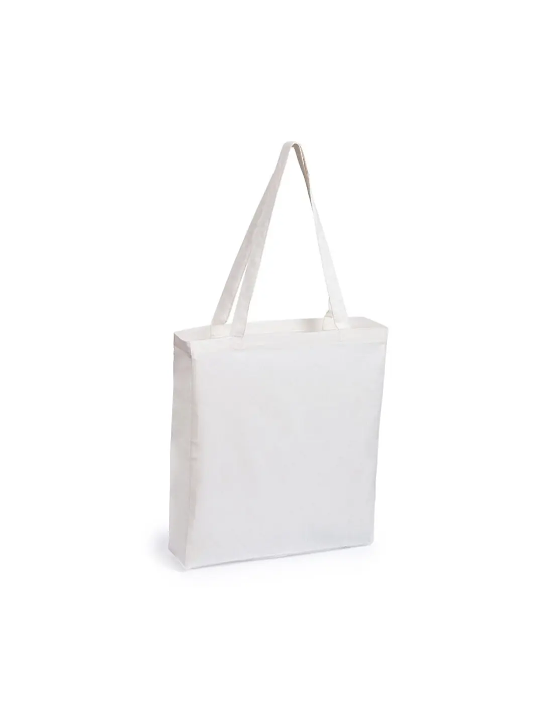 Bolsa en material 100% algodón con acabado en color natural. Con asas largas reforzadas de 70cm, fuelle y acabado cosido. Resistencia hasta 7kg de peso.