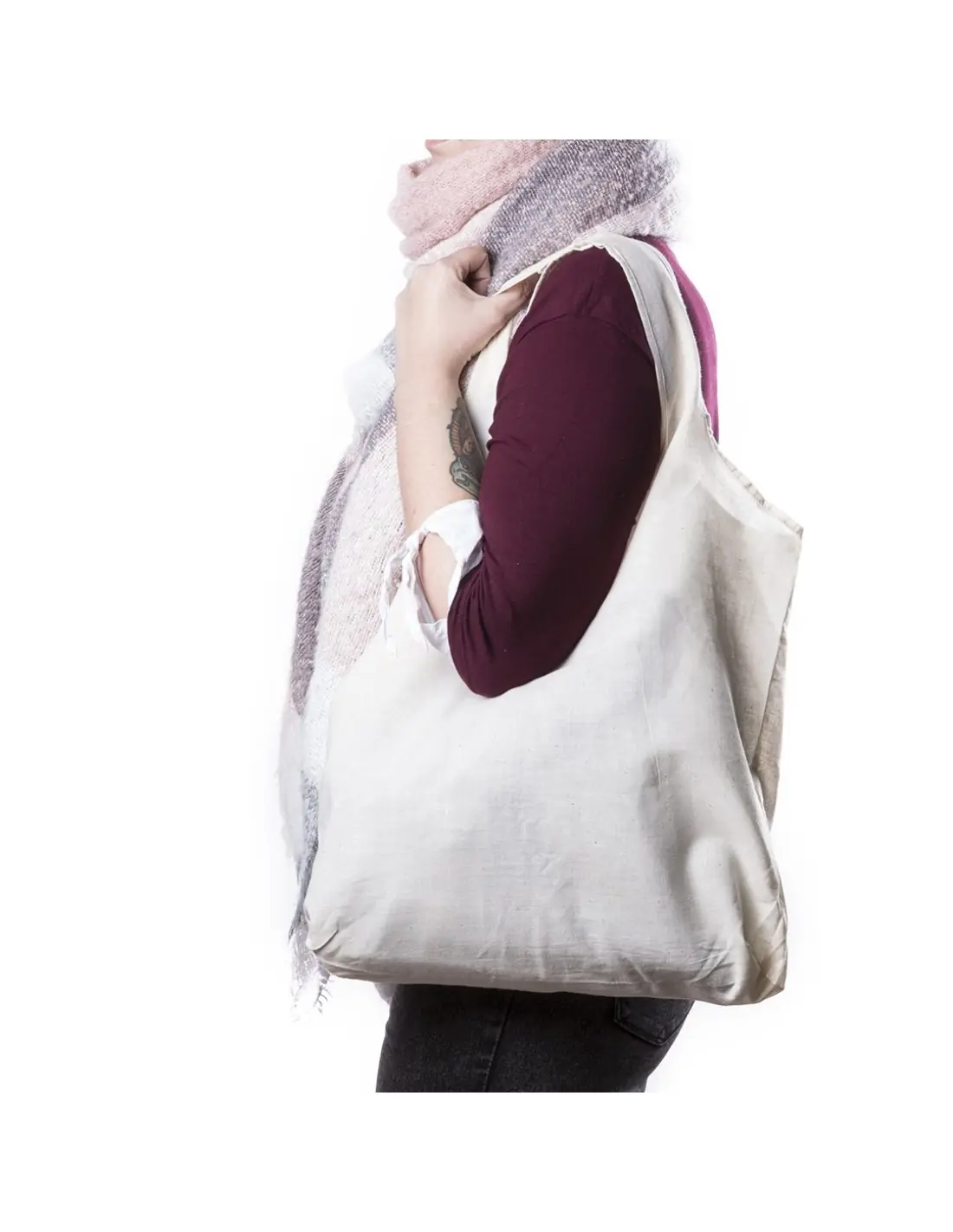 Bolsa en material 100% algodón con acabado en color natural. Con originales asas para hombro y de acabado cosido. Resistencia hasta 7kg de peso.
