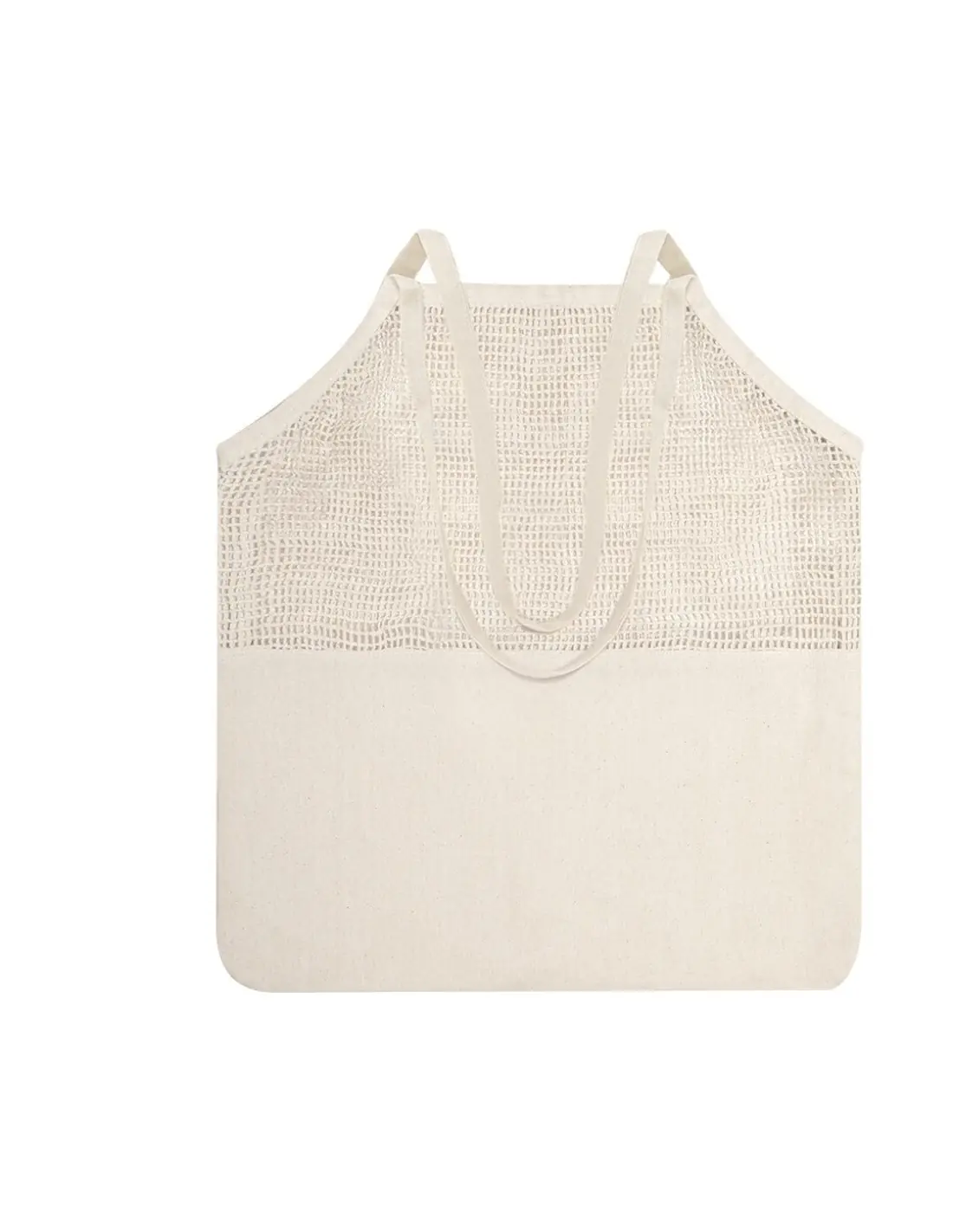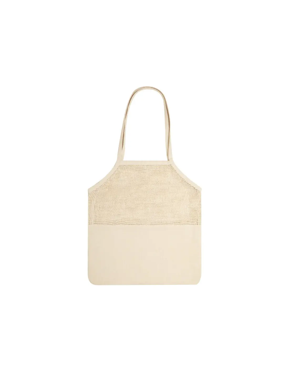 Bolsa de redecilla de línea nature en algodón crudo de 220g/m2, con superficie lisa para impresión. Asas largas de 60 cm reforzadas.
