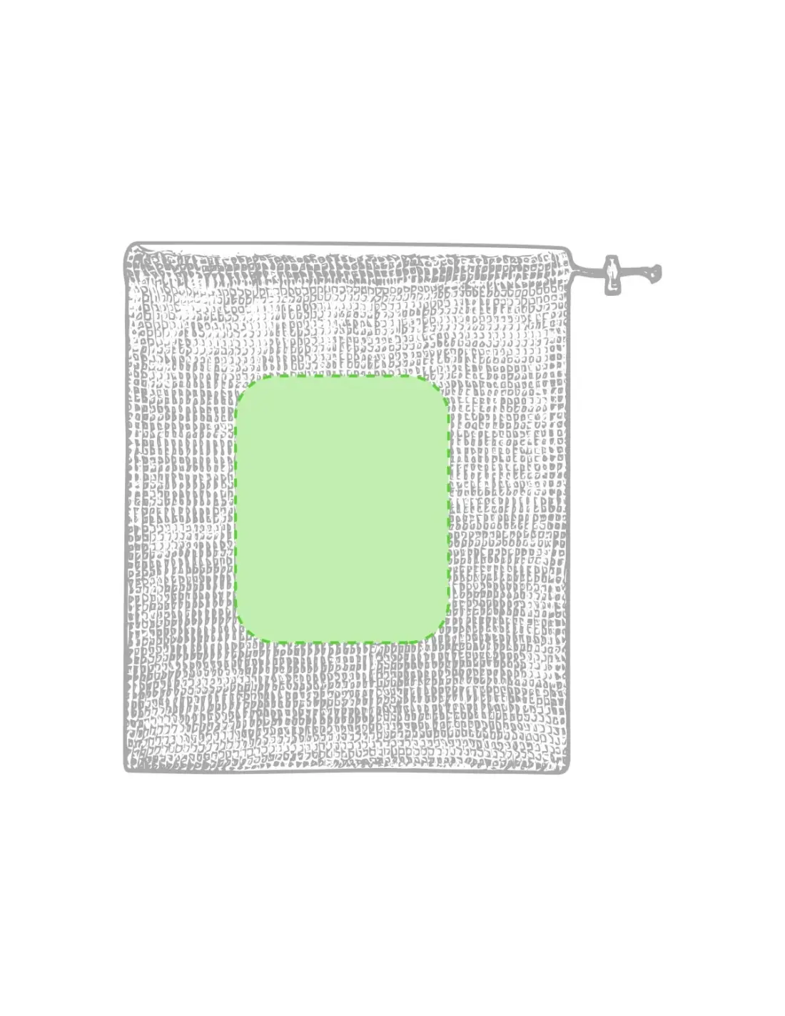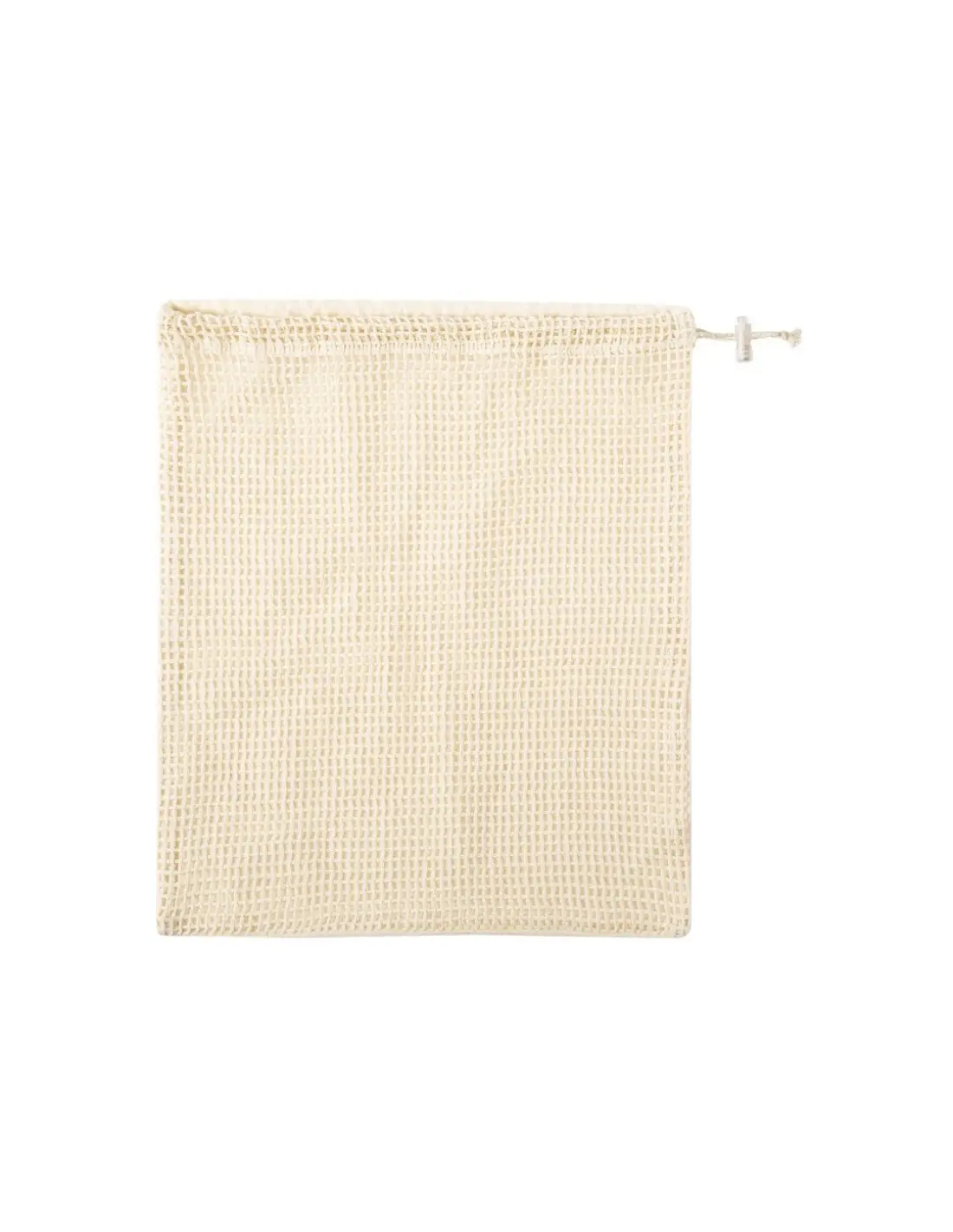 Bolsa de redecilla de línea nature en algodón crudo de 120g/m2, con una cara lisa para impresión. Cierre de cordón con accesorio de ajuste.