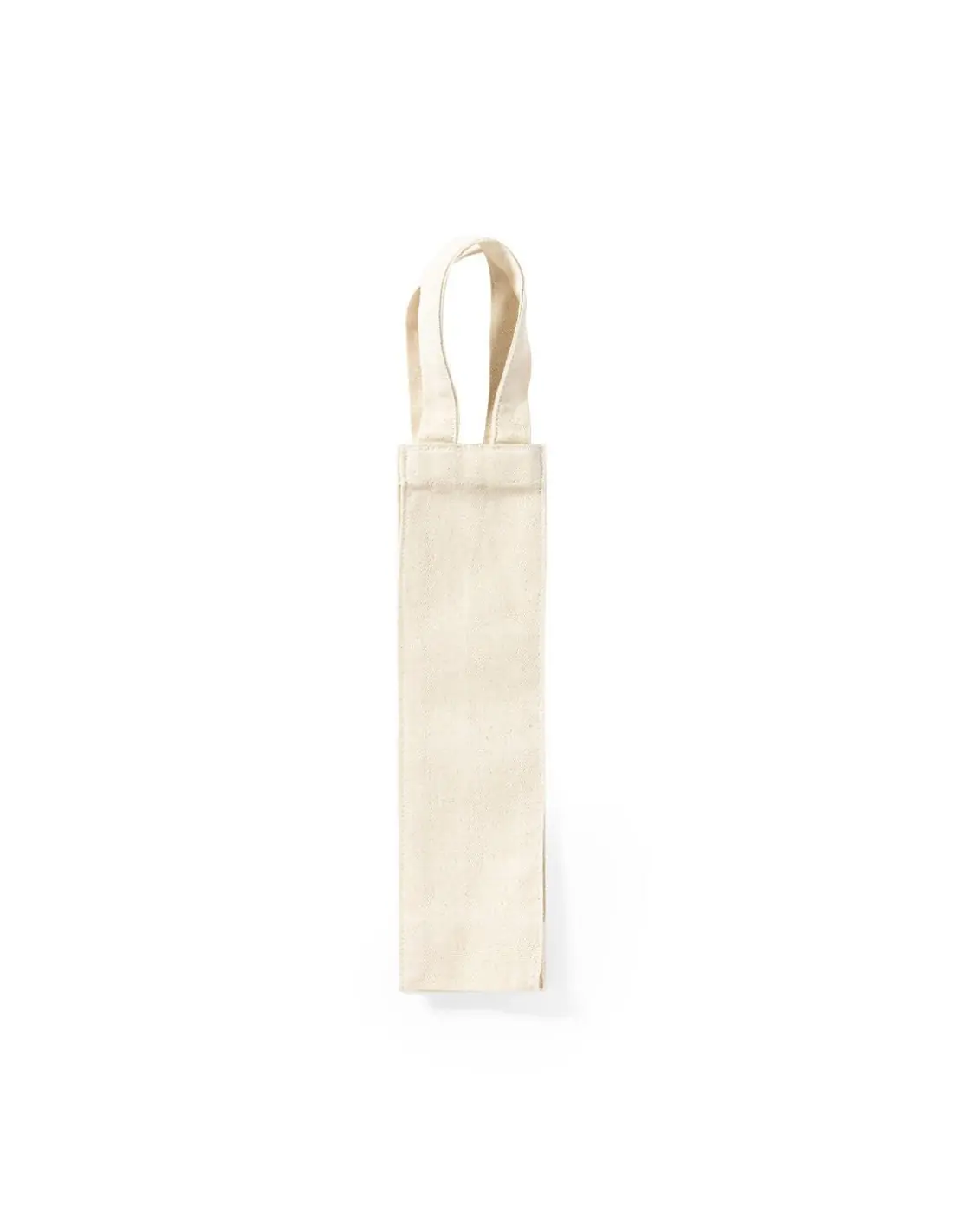Bolsa de canvas de 220g/m2 para botella de vino de 75cl. En color natural, con resistente acabado cosido y asas reforzadas.