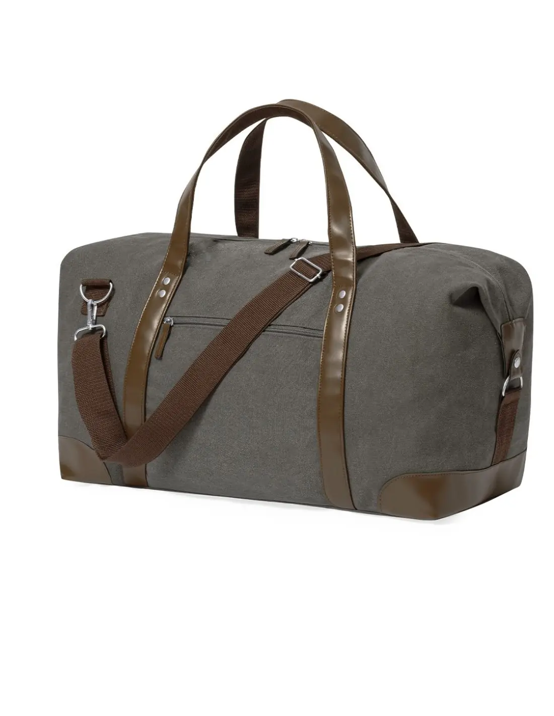Elegante bolso fabricado en resistente canvas de 475g/m2 gris, con prácticas y resistentes asas en polipiel alrededor del bolso y esquinas reforzadas. Compartimento principal con cierre de cremallera a juego con las asas y cinta para hombro ajustable con mosquetón. Incluye bolsilo exterior de fácil acceso.Presentado en bolsa individual reciclada.