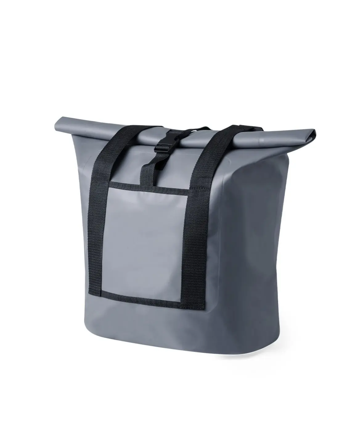 Bolso impermeable de 25L de capacidad, confeccionado en resistente PVC. Compartimento principal con cierre de hebilla y asas ajustables para un cómodo transporte. Incluye bolsillo frontal abierto de fácil acceso. En elegante color gris con detalles en negro y presentado en bolsa individual reciclada.