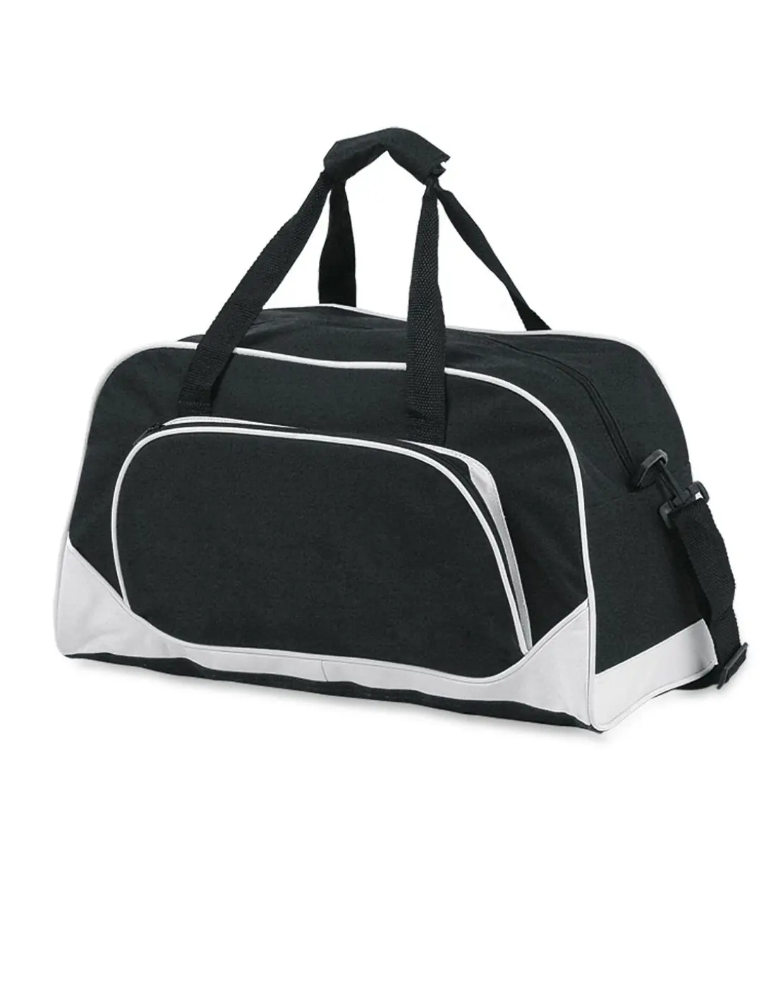 Bolso multiusos en resistente poliéster 600D de desenfadado diseño bicolor en amplia gama de colores, con ribetes de refuerzo y base en color blanco. Compartimento principal y bolsillo exterior con cierre de cremallera a juego. Con resistentes asas de nylon a juego con cierre de velcro y cinta bandolera ajustable de doble cierre de mosquetón.