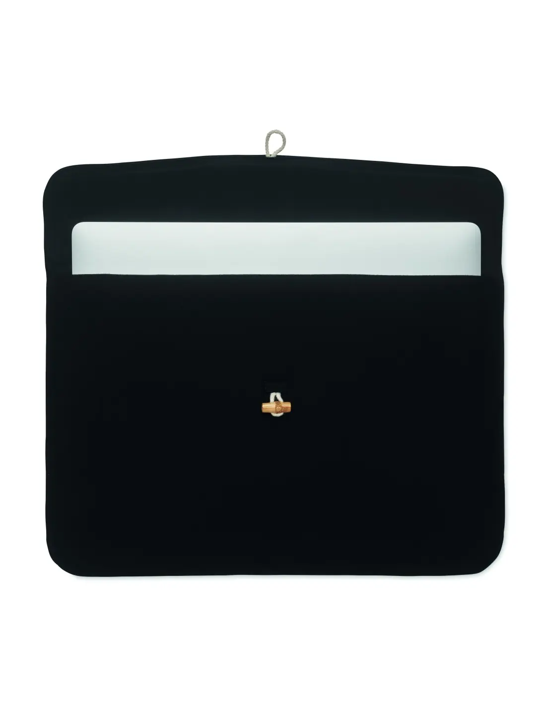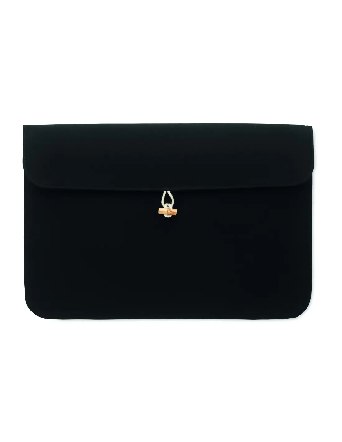 ''Bolsa acolchada para portátil de 15'''' en algodón de 220 gr/m². Forro interior de 120 gr/m². Cierre de botón de bambú.''