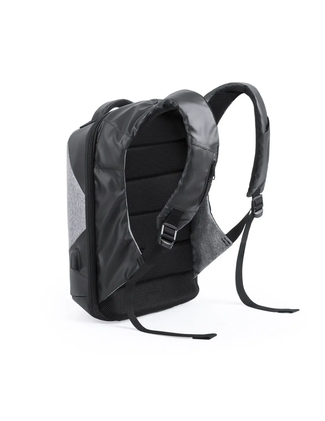 Mochila de negocios antirrobo y repelente al agua en nylon de alta calidad, resistente a cortes y a roces. Con bolsillo antirrobo en la espalda para guardar objetos de valor. Compartimento interior con salida USB para conexión de powerbank -no incluido-. Incluye cable micro USB de 1 metro de largo para total comodidad en la carga de cualquier dispositivo móvil. Bolsillo en cinta derecha con fácil acceso para tarjeta de transporte y otros documentos de uso frecuente. Apertura total 180º para fácil acceso al interior de la mochila. Dos compartimentos interiores independientes y acolchados para ordenador portátil de hasta 15 pulgadas y para tablets de hasta 10 pulgadas. Con multitud de bolsillos interiores y exteriores. Cintas de hombros y espalda con acolchado ergonómico.