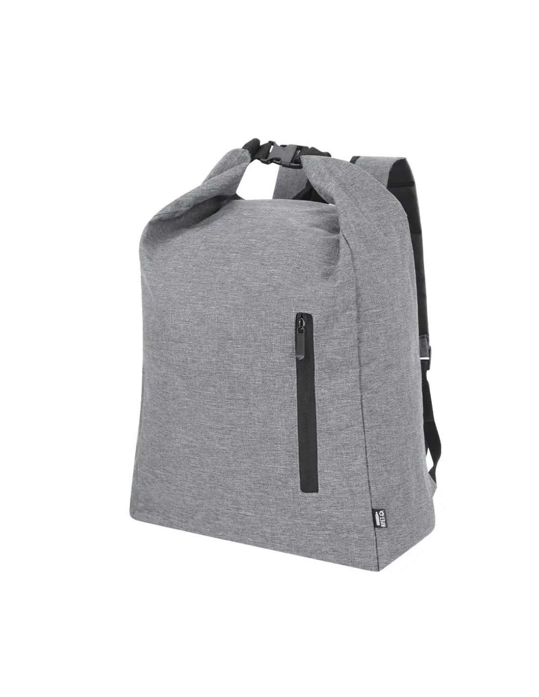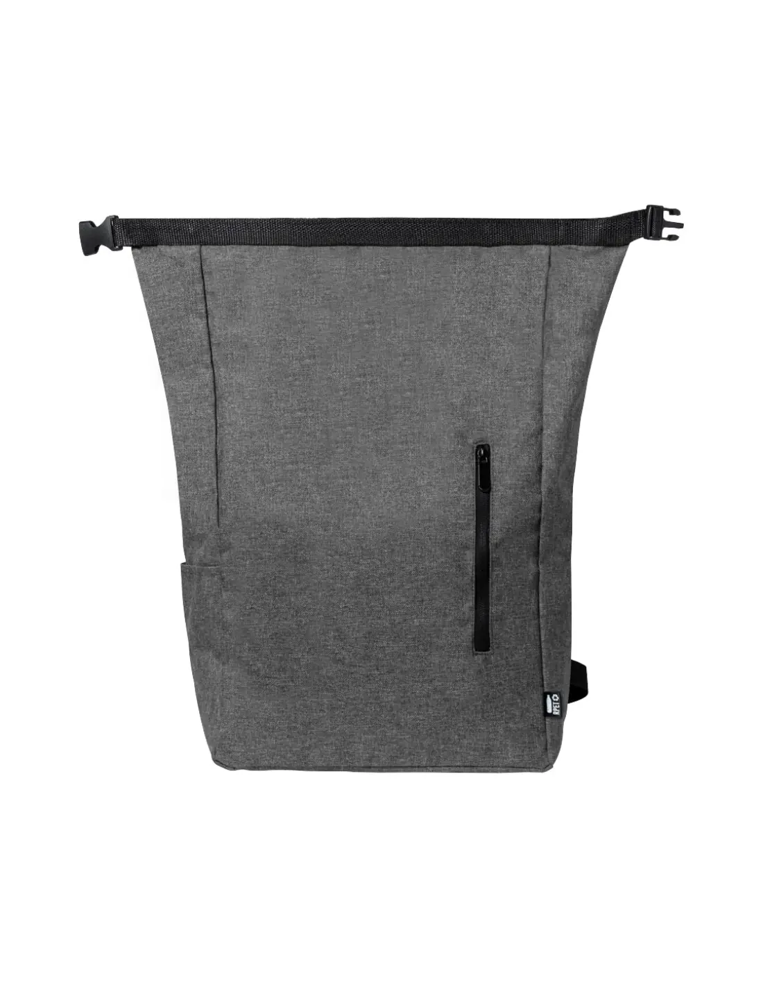 Mochila de línea nature fabricada en resistente 300D RPET, elaborado a partir de plástico reciclado, para así fomentar la reutilización de residuos plásticos y contribuir a la sostenibilidad del planeta. Bolsillo principal con cierre de hebilla y bolsillo lateral. Cintas acolchadas ajustables para hombro y distintivo RPET en etiqueta exterior.