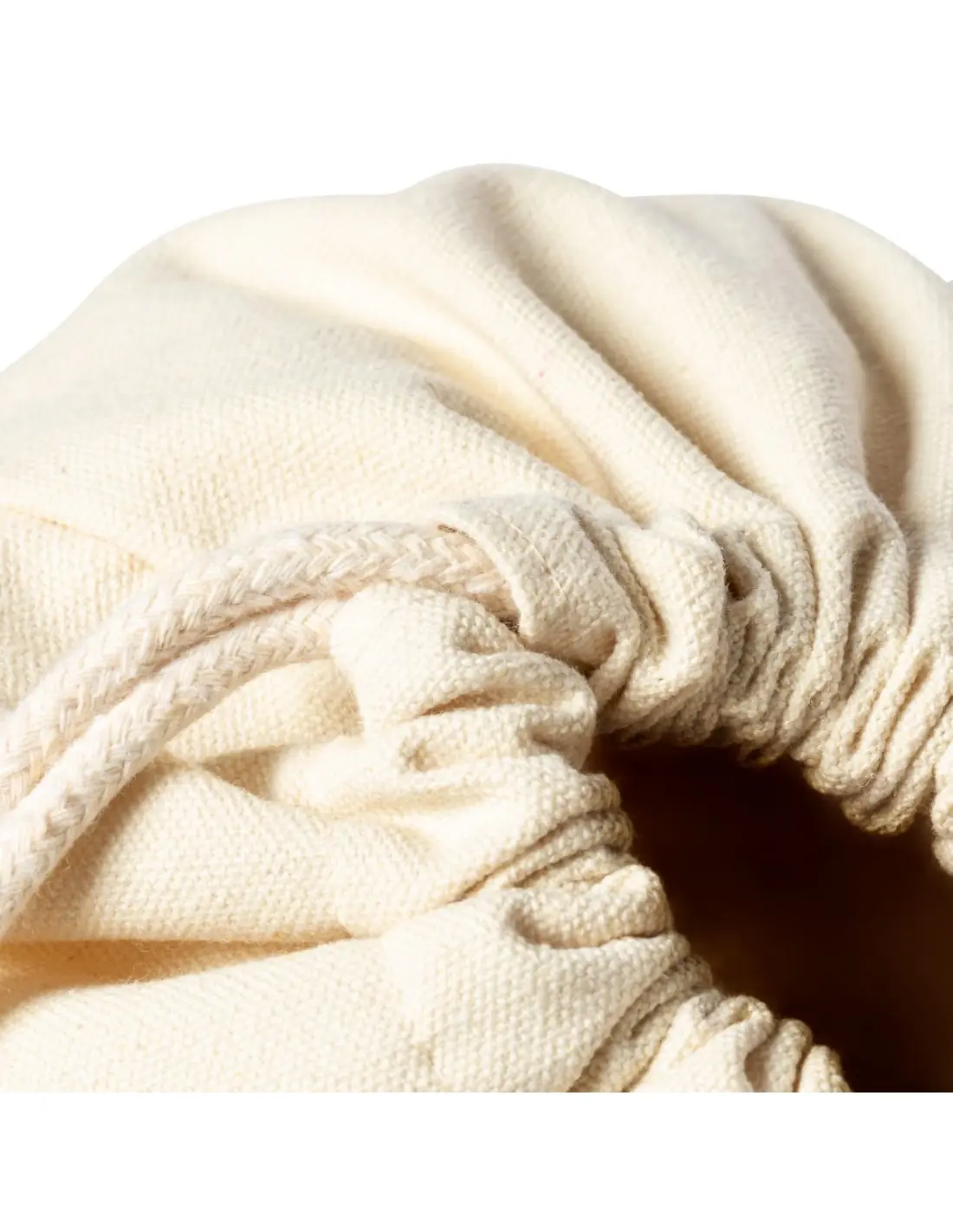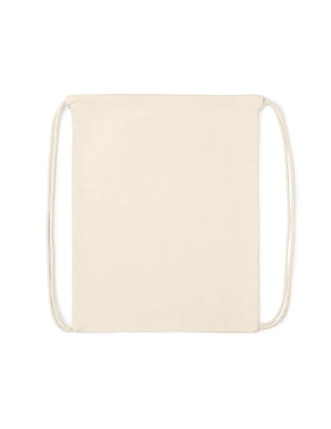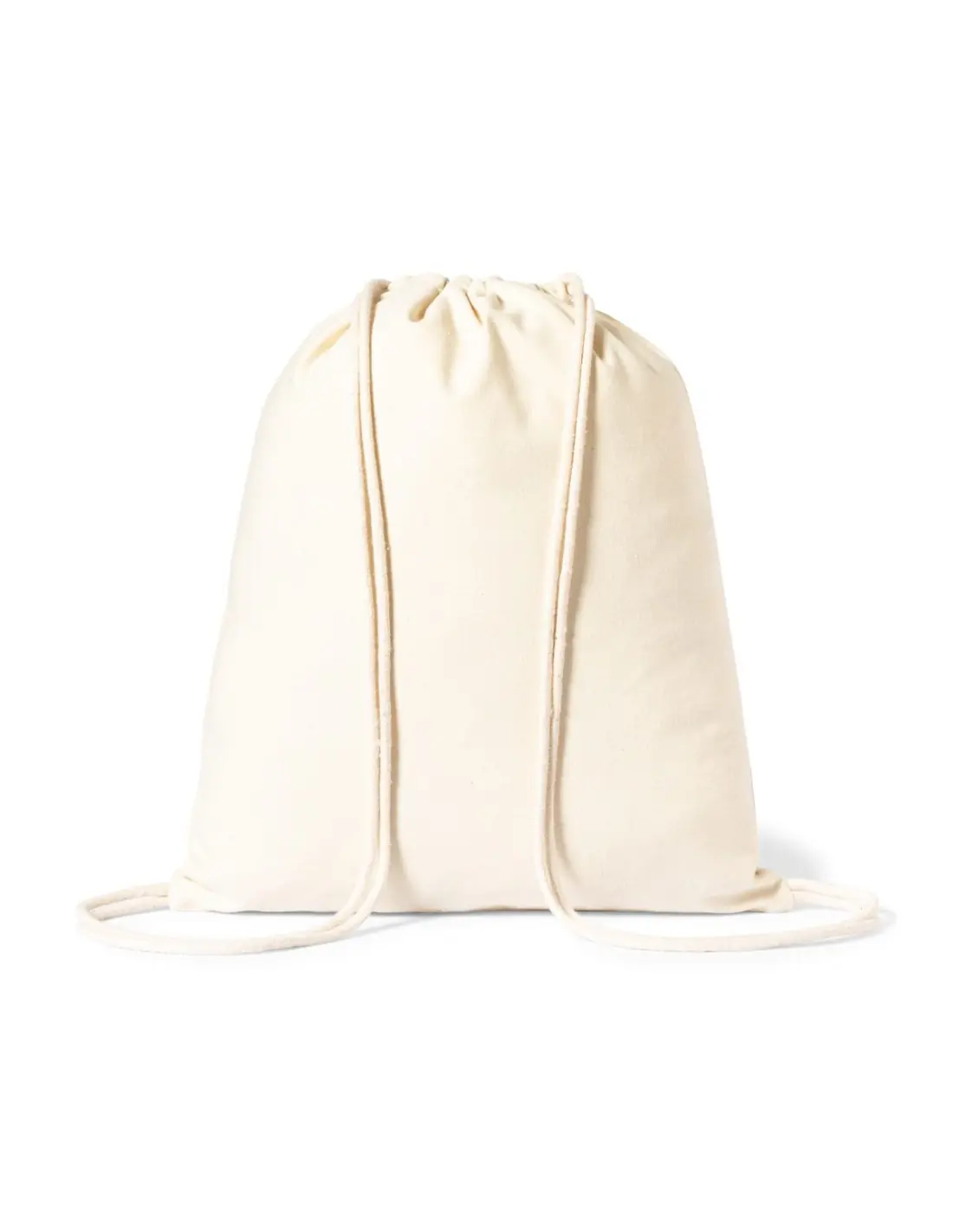 Mochila de cuerdas de línea nature fabricada en 100% algodón de 180g/m2 en acabado natural. Compartimento principal con cordones en algodón.