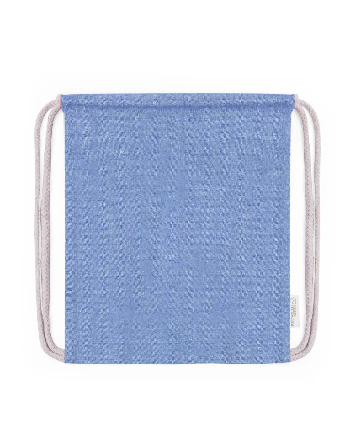 Mochila de cuerdas en material 100% algodón reciclado de 120 g/m2. Cuerdas autocierre en algodón, con logotipo eco en etiqueta lateral y disponible...