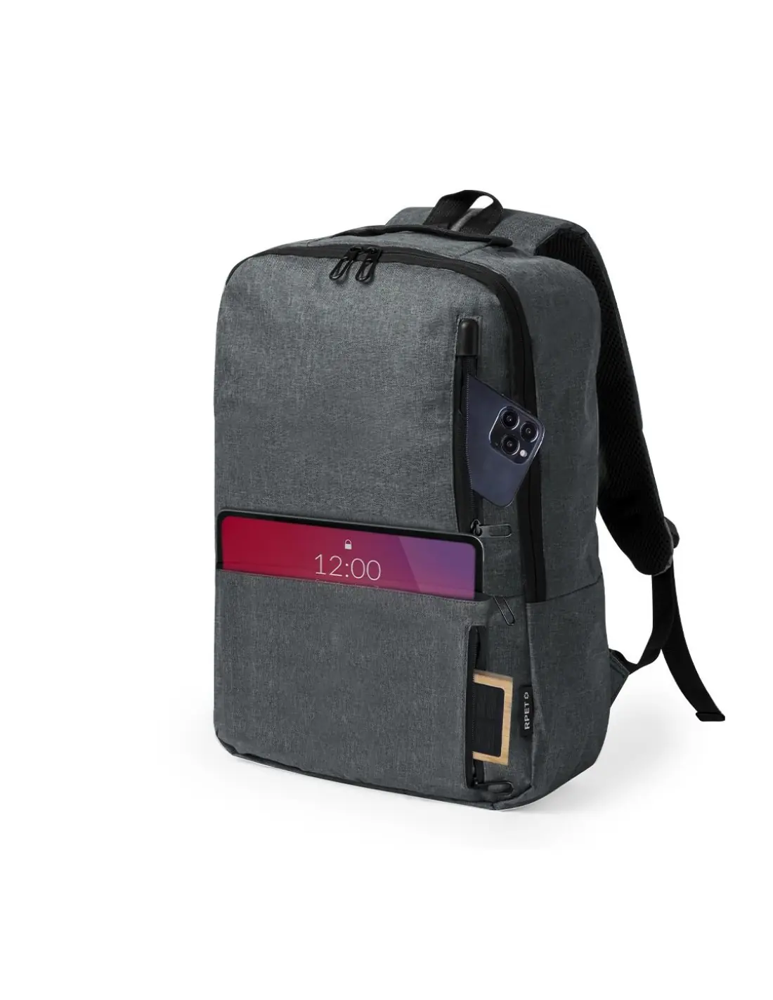 Mochila elaborada en resistente 600D RPET. Equipada con un cierre de cremallera de doble tirador y tres bolsillos frontales de acceso rápido. En su interior, cuenta con compartimentos acolchados diseñados para tablet de hasta 10 pulgadas y portátil de hasta 15 pulgadas. Las cintas de hombros son acolchadas y ajustables para brindar comodidad. Además, presenta una cinta superior y bolsillo lateral para mayor funcionalidad. Disponible en tres elegantes colores, con cremalleras negras. Logotipo RPET en etiqueta. Presentada en una bolsa individual reciclada. El material RPET se elabora a partir de plástico reciclado, para así fomentar la reutilización de residuos plásticos y ayudar a la sostenibilidad del planeta.