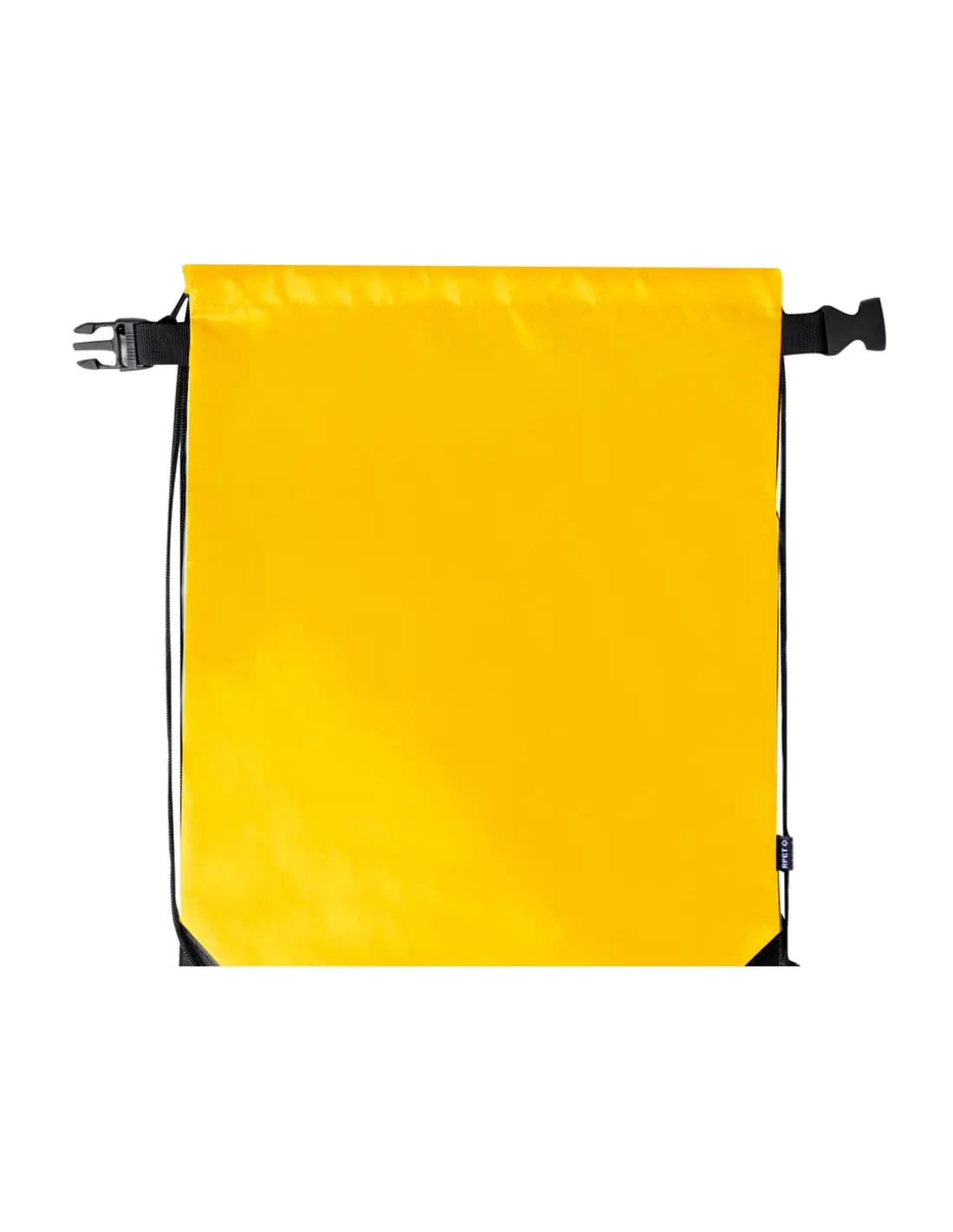 Mochila de cuerdas en suave poliéster RPET 210T. Con cierre de hebilla de seguridad y cuerdas autocierre. Con esquinas reforzada, argollas metálicas...