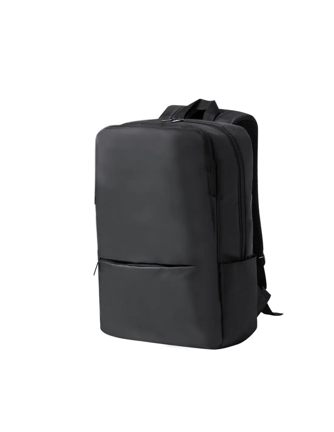 Mochila confeccionada en elegante polipiel De diseño urbano, que incorpora un bolsillo principal acolchado con doble cierre para tablet de hasta 10 pulgadas y portátil de hasta 15 pulgadas, así como un bolsillo segundario y un bolsillo frontal con cremallera. Las cintas de hombros y la espalda son acolchadas, ajustables y cuentan con una tela transpirable para disipar el calor. Además, incluye un accesorio para ajustarse al trolley y una práctica asa en la parte superior. Presentada en una bolsa individual reciclada.
