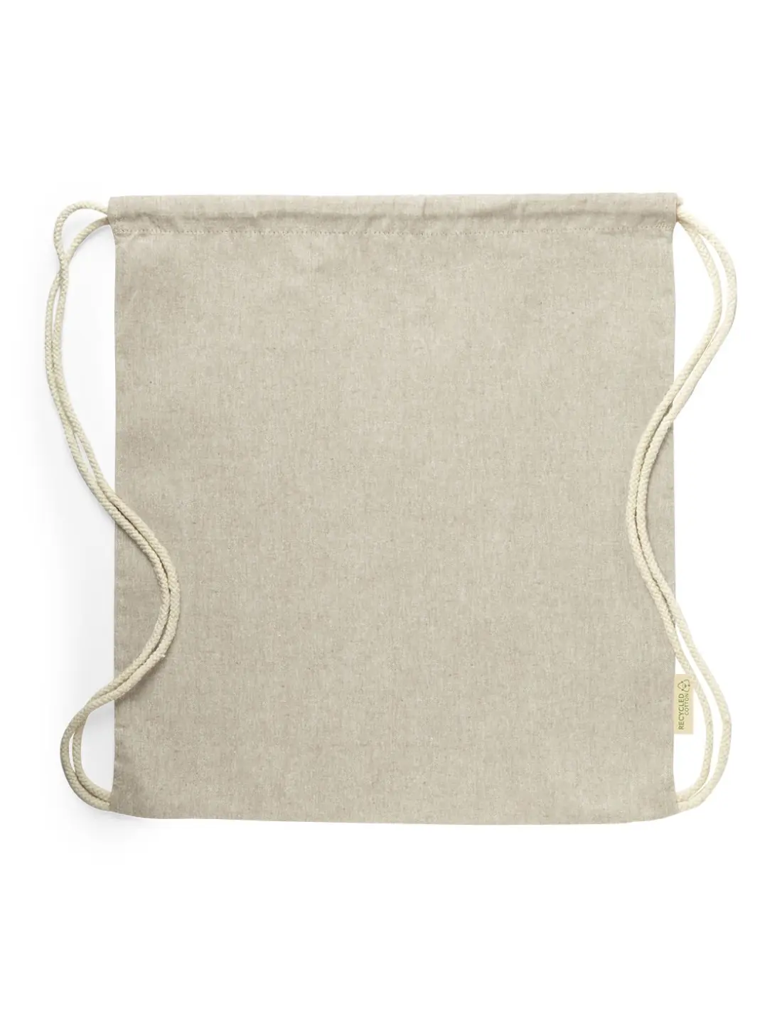 Mochila de cuerdas de línea nature en material 100% algodón reciclado de 120 g/m2. Cuerdas autocierre en algodón, con distintivo eco en etiqueta...