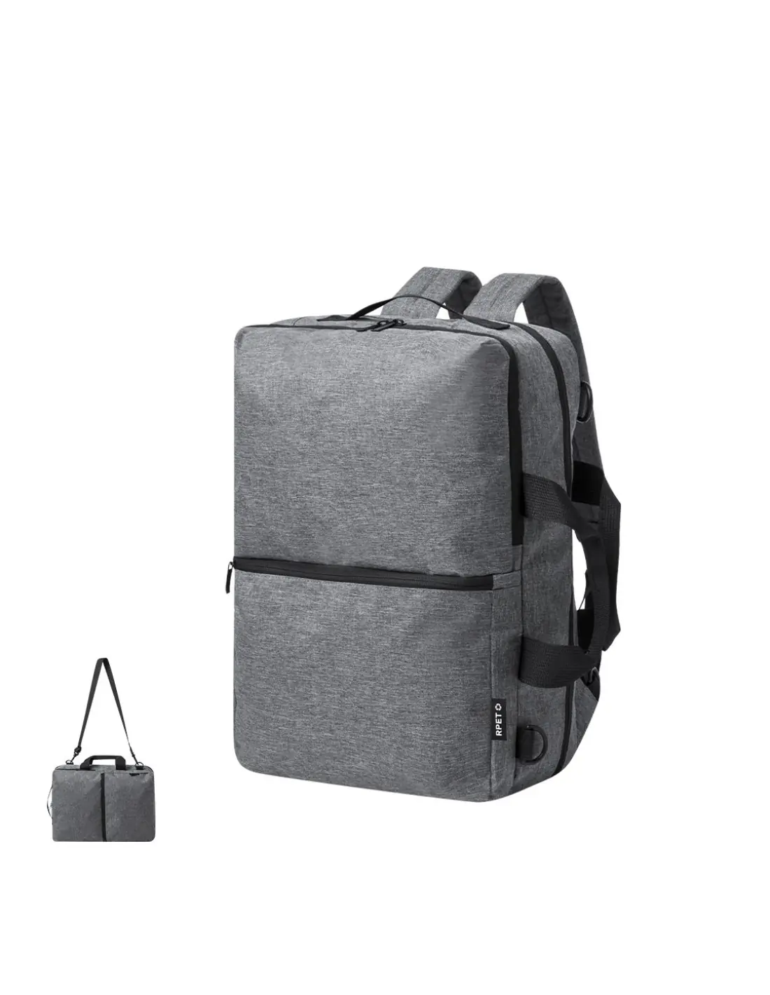 Mochila portadocumentos confeccionada en resistente 600D RPET. Presenta un diseño urbano que incorpora un bolsillo central con cierre de cremallera, y doble tirador. Con interior acolchado para portátil de hasta 15 pulgadas, bolsillo adicional con cierre de doble cremallera y bolsillo frontal. Sus cintas de hombros y la espalda están acolchadas y son ajustables para mayor comodidad. Ofrece tres modalidades de transporte: como mochila, gracias a las tiras de hombros colchadas; como portadocumentos, gracias a su asa de transporte acolgada; y como bandolera gracias a su asa larga ajustable. Está disponible en tres elegantes colores y se presenta de manera sofisticada en una bolsa individual reciclada.El material RPET se elabora a partir de plástico reciclado, para así fomentar la reutilización de residuos plásticos y ayudar a la sostenibilidad del planeta.