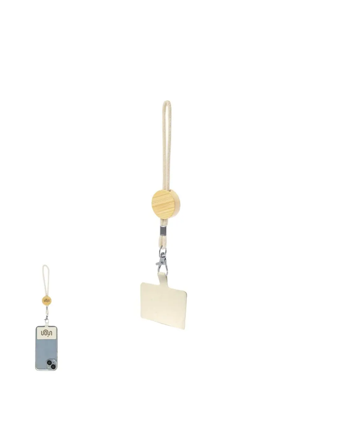 Original pulsera portamóvil en suave algodón, adaptable a todo tipo de muñecas. Con accesorio de transporte para situar entre la funda y el smartphone. Pieza central de bambú para personalización, especial para grabado en láser. Presentado individualmente en bolsa de papel reciclado.Materiales como el bambú fomentan la utilización de materias primas naturales, reduciendo las emisiones contaminantes. Proviene de una planta de gran resistencia y versatilidad, con crecimiento y regeneración rápidos, siendo una excelente alternativa al uso de madera tradicional.