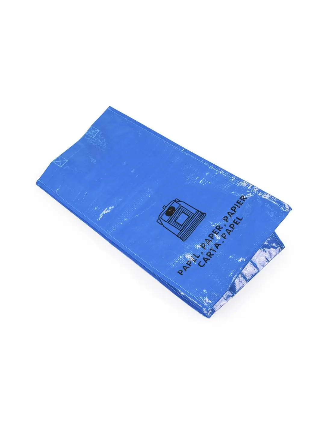 Set de 3 bolsas de reciclaje amarilla-verde-azul en resistente pp-woven laminado de 125g/m2 de acabado brillante. Incluye 3 bolsas de 23x45x23cm unidas entre sí mediante resistentes velcros laterales. Con asas reforzadas e indicación de tipos de residuo: plástico y envases, vidrio y papel.