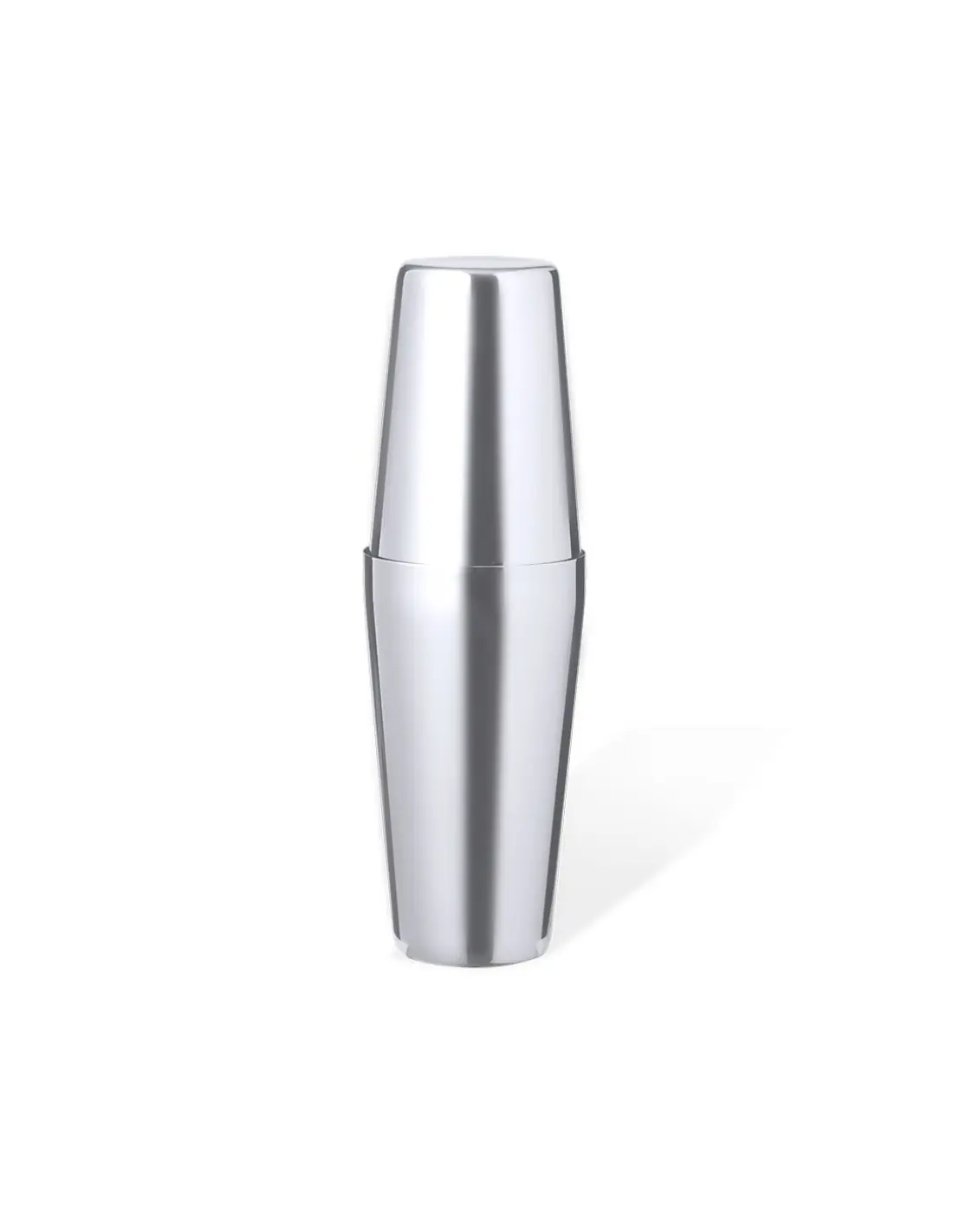 Coctelera de 500 ml fabricada en acero inox. Fabulosa coctelera compuesta de dos vasos en acero inox que encajan entre sí para un perfecto sellado, para preparar bebidas refrescantes. Presentada en caja de diseño kraft.