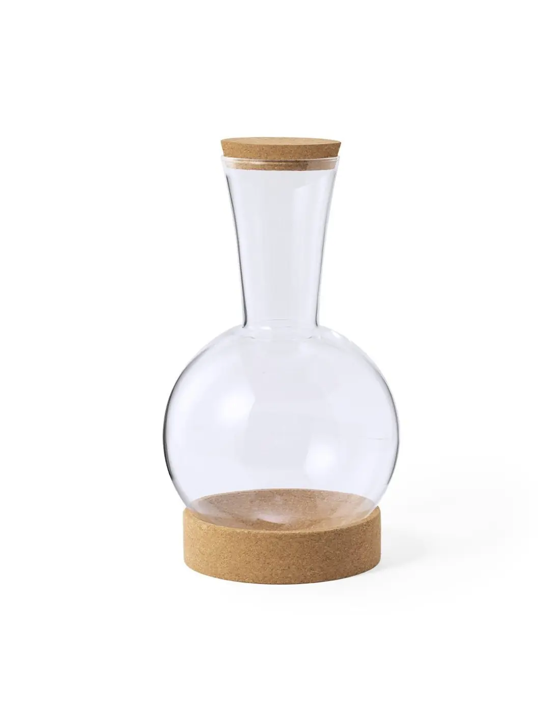 Decantador de línea nature, fabricado en cristal de borosilicato y con base y tapón en corcho natural. De 1,7L de capacidad y presentado en caja individual de diseño eco.