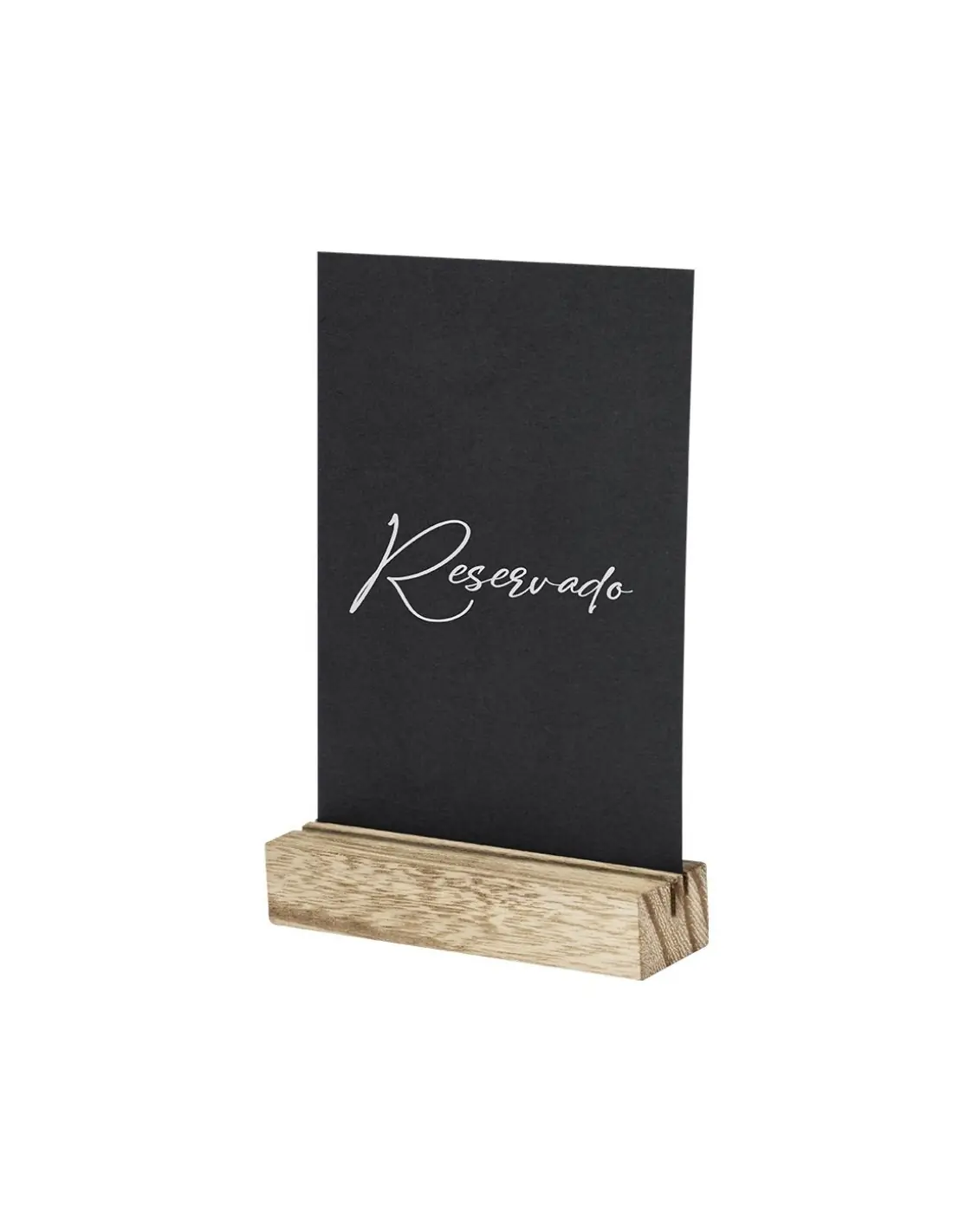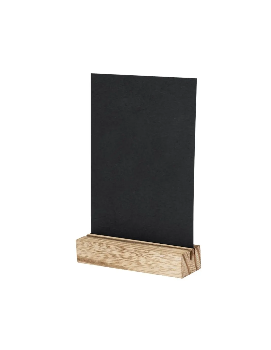 Portagráfica con base fabricada en resistente madera. Incluye práctica pizarra para escribir por ambos lados de la misma y viene presentada en caja individual de diseño kraft.