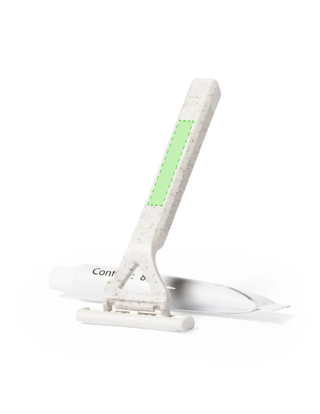 Set de afeitado con cuchilla y gel de afeitar. Contenido: Cuchilla de afeitar de doble hoja con cuerpo fabricado en en caña de trigo, para así fomentar la utilización de materias primas naturales y reducir las emisiones contaminantes. Gel de afeitar en tubo de 8 gr, con tapón a rosca.Set presentado en caja individual de diseño kraft.