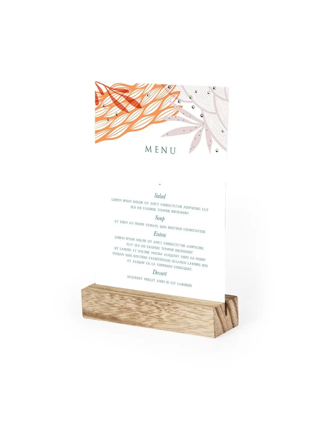 Base soporte fabricado en madera. Práctico pedestal cuadrado con ranura para coger documentos y exponerlos. Presentado individualmente en una caja diseño kraft.