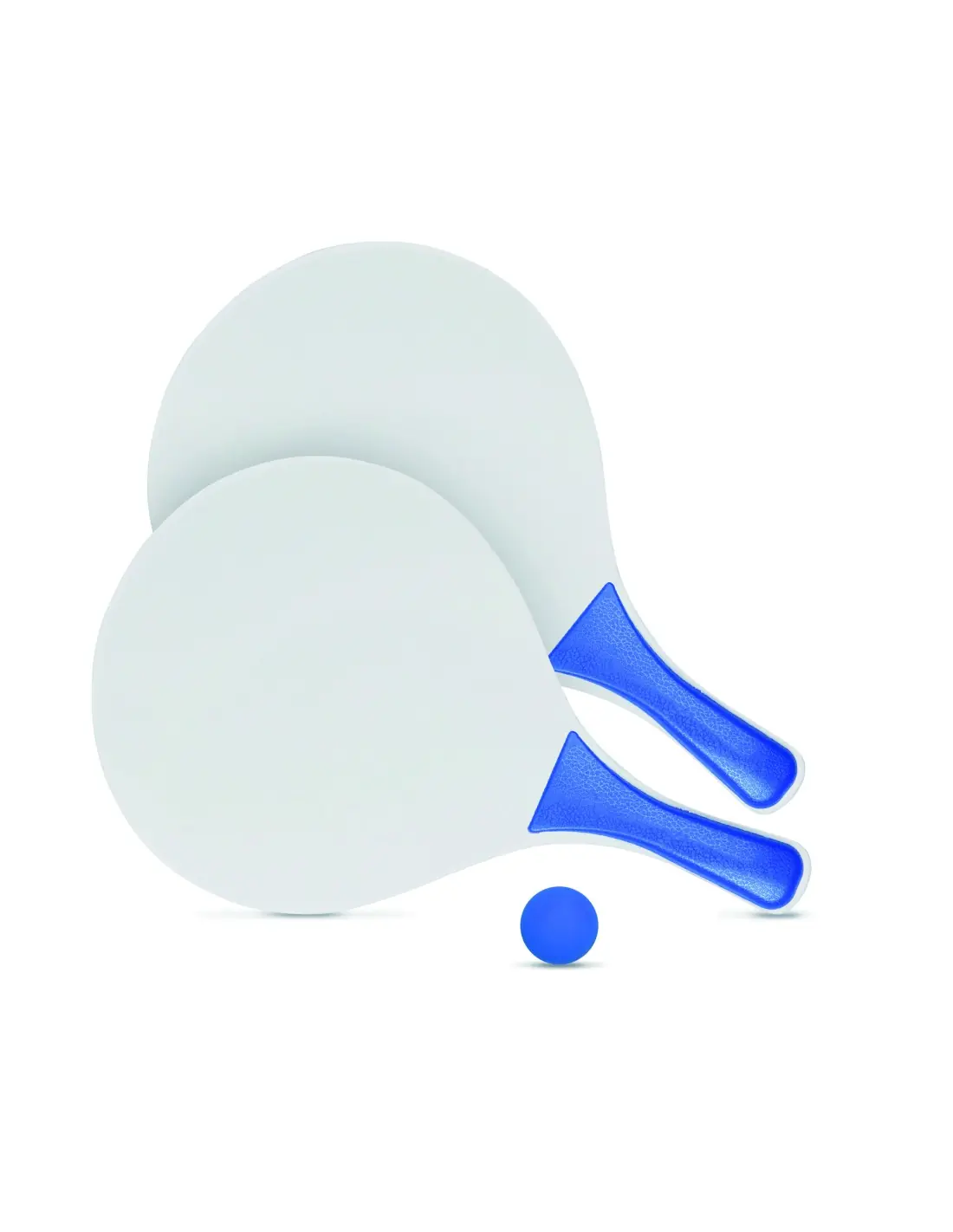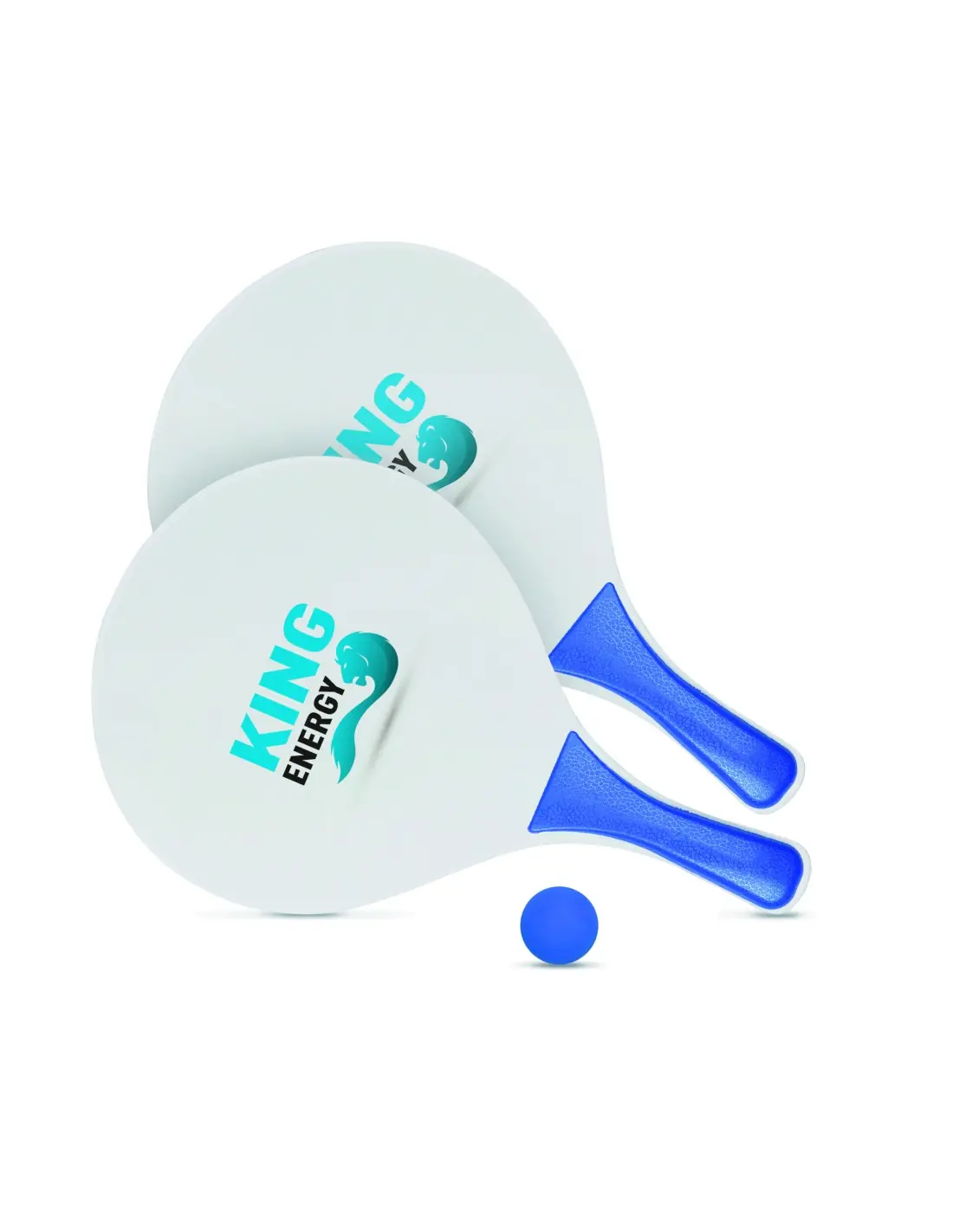 Set de playa compuesto por 2 palas en aglomerado de madera y 1 pelota.