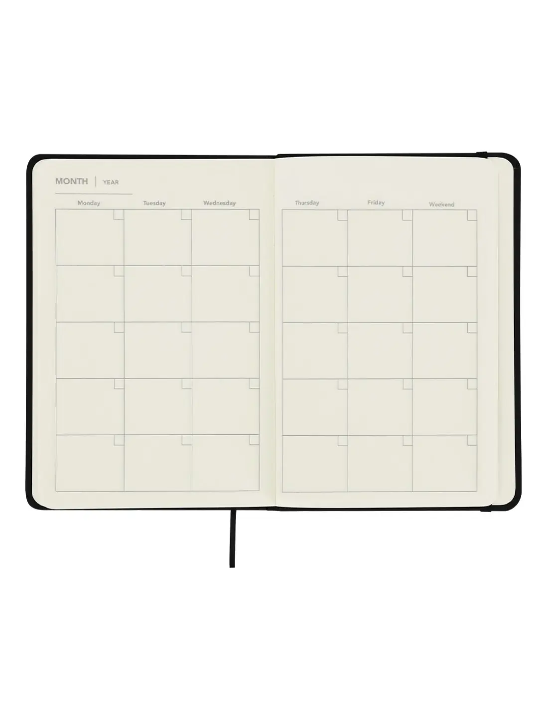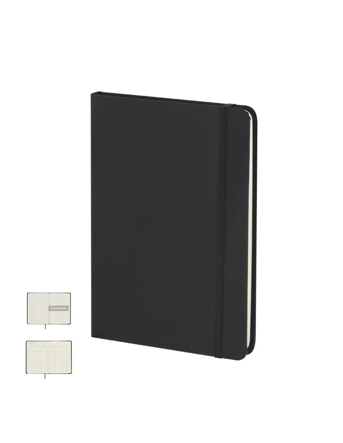 Bloc de notas con planificador mensual incluido. Elaborado en suave PU, con banda elástica a tono. Incluye: - 98 hojas color crema, sin líneas - 13 hojas de planificador mensual no fechado, con vista de calendario mensual - hojas adicionales para notas, con disposición a rayas Perfecto para planificar tu mes, tomar apuntes o notas y organizar tu día a día.