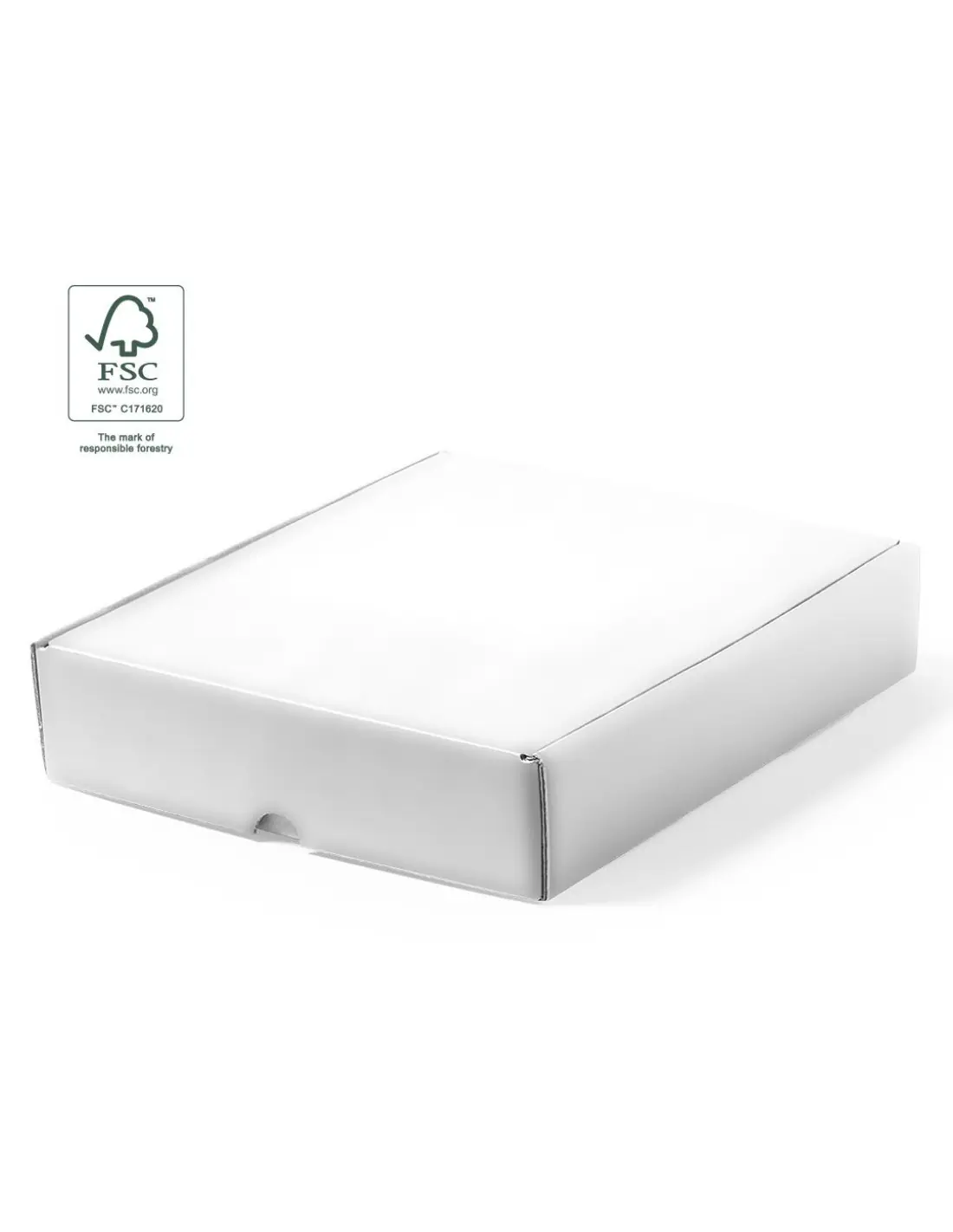 Caja de presentación tamaño XL fabricada en cartón reciclado corrugado de acabado blanco. En línea con la tendencia del mercado hacia la sostenibilidad integral del regalo, ofreciendo soluciones de origen reciclado con el fin de ayudar a la mejora y conservación de nuestro planeta.