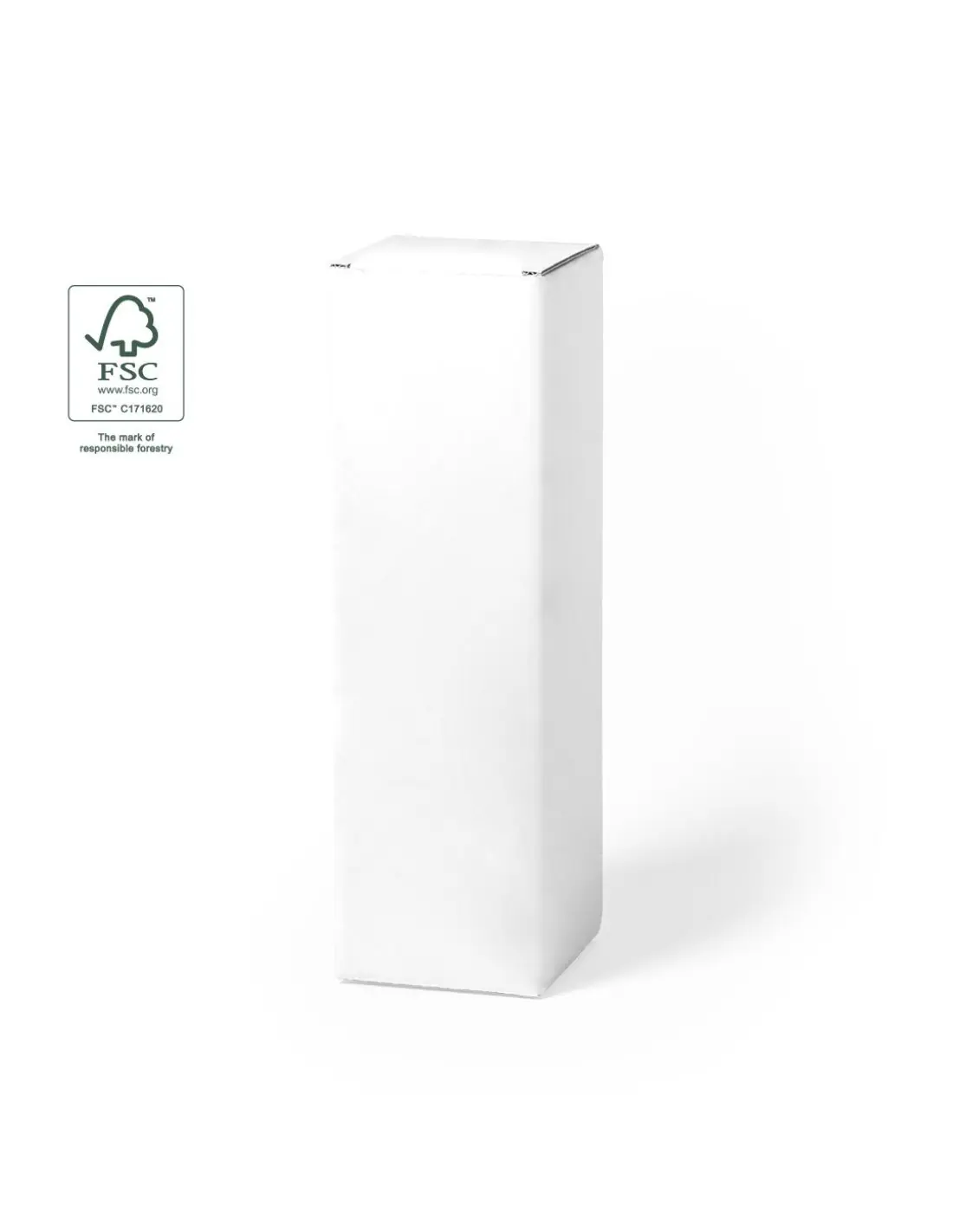 Caja de presentación especialmente diseñada para bidones. Tamaño 8x26,7x8 cm y fabricada en cartón reciclado corrugado de acabado blanco. En línea con la tendencia del mercado hacia la sostenibilidad integral del regalo, ofreciendo soluciones de origen reciclado con el fin de ayudar a la mejora y conservación de nuestro planeta.