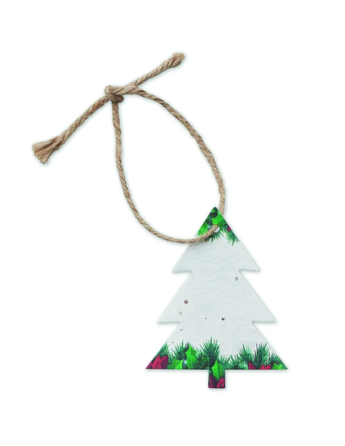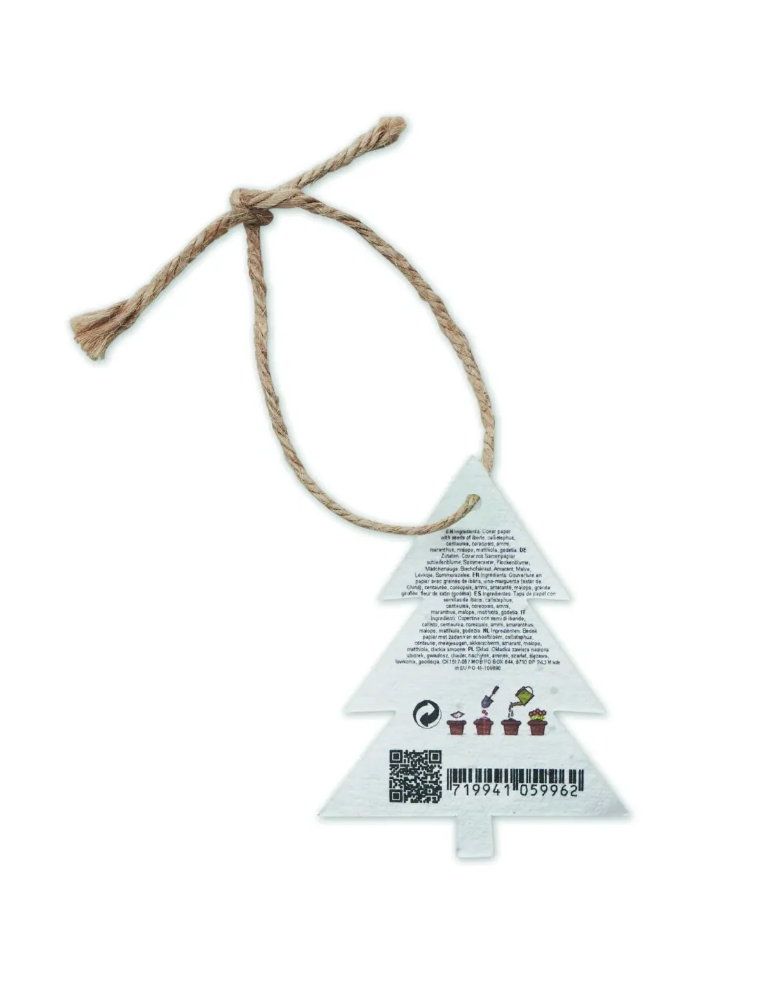 Adorno navideño hecho de papel de semillas en forma de árbol de Navidad de flores silvestres y cuerda de yute. Después de usarlo, planta el adorno y observa cómo crecen en tu jardín. Fabricado en la UE. Decora tu árbol de Navidad o tu casa con este adorno de papel. Después de las fiestas, puedes utilizar este adorno para cultivar una mezcla de flores silvestres en tu jardín. Un artículo realmente sostenible y reutilizado.