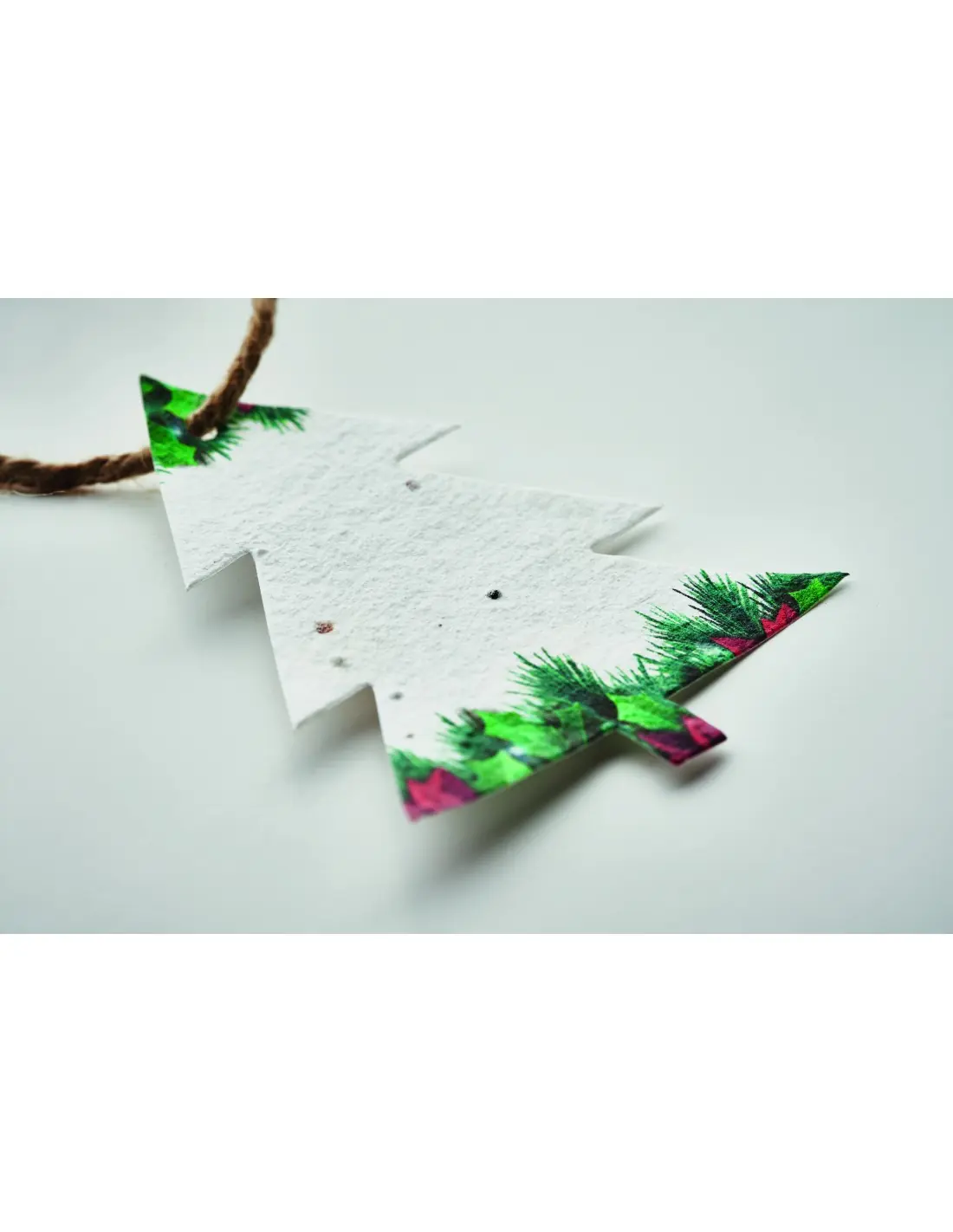 Adorno navideño hecho de papel de semillas en forma de árbol de Navidad de flores silvestres y cuerda de yute. Después de usarlo, planta el adorno …