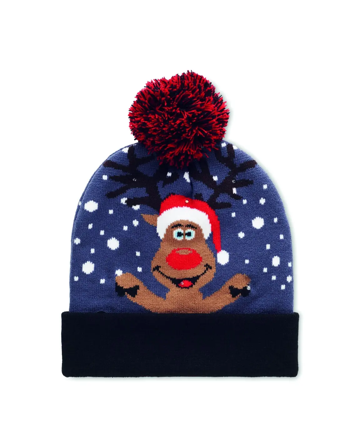 Gorro de punto navideño con luz de 6 LED con puño y borla en suave acrílico elástico.