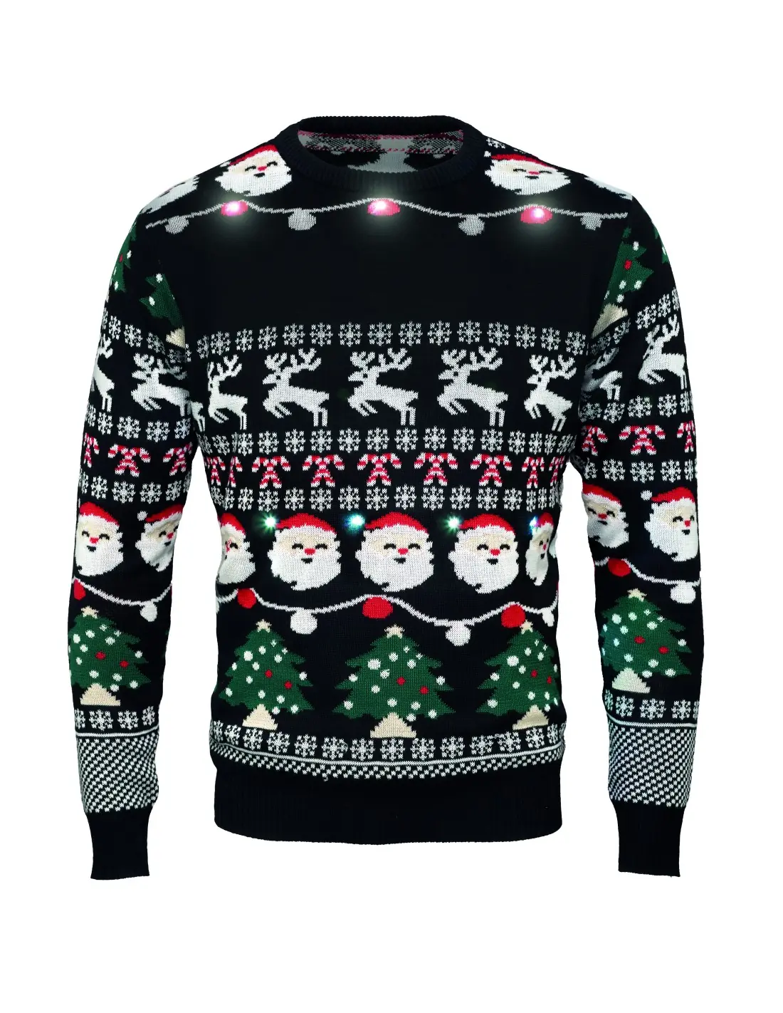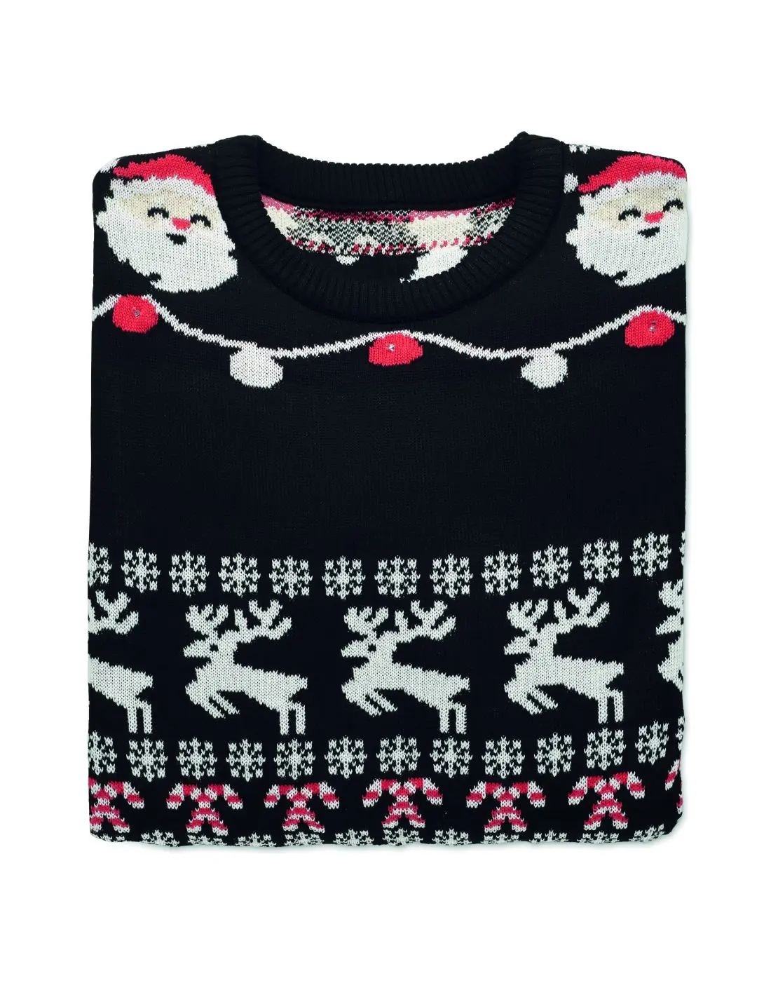Jersey de Navidad con 10 luces LED en Acrílico. Talla: L/XL. Preséntate en el trabajo o en la cena familiar de Navidad con estilo con este jersey festivo. Compartimento para pilas extraíble. Incluye 2 pilas CR2032.