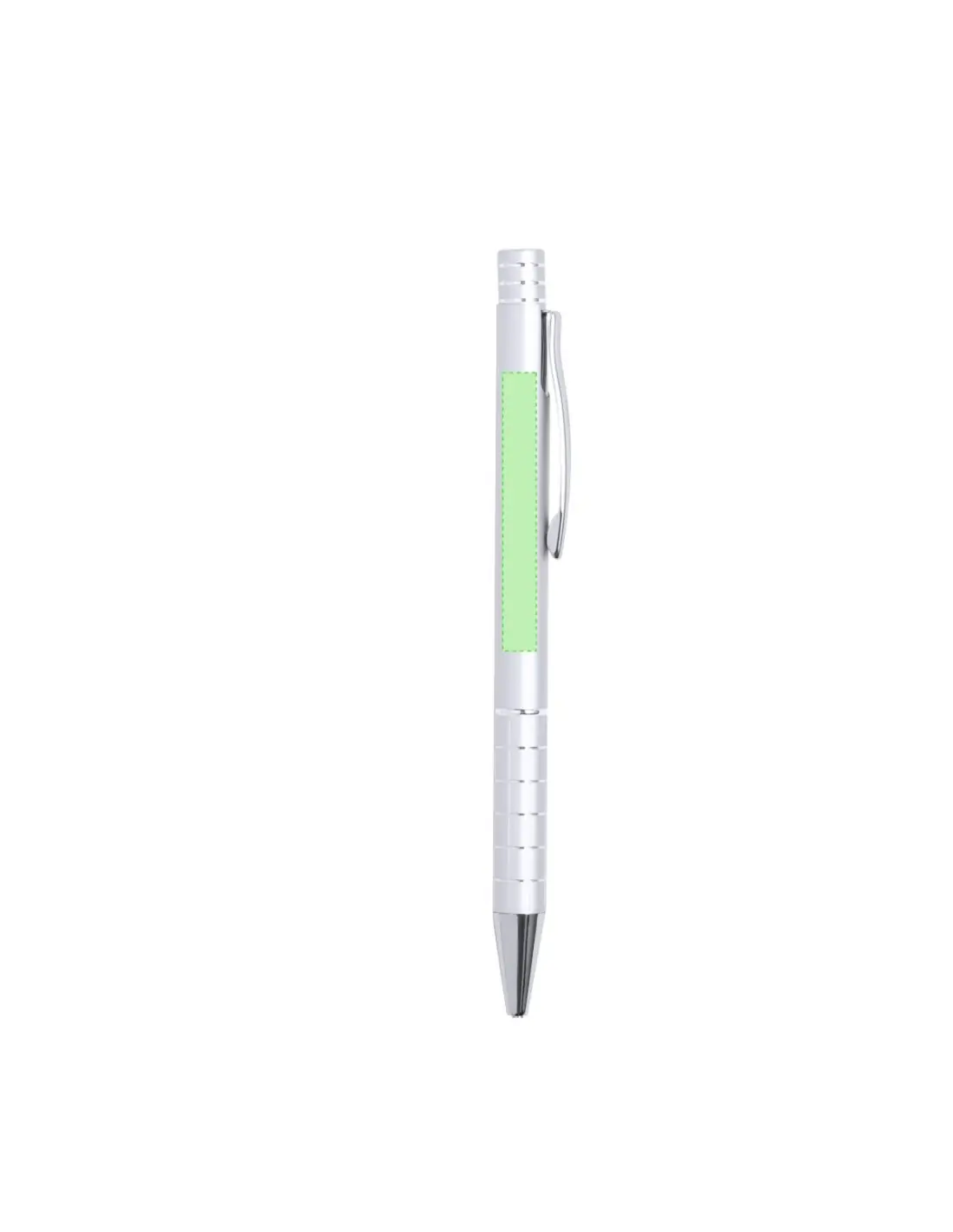 Bolígrafo de Antonio Miró de elegante diseño y suave cuerpo en aluminio con accesorios en color plateado. De mecanismo pulsador, con parte superior...
