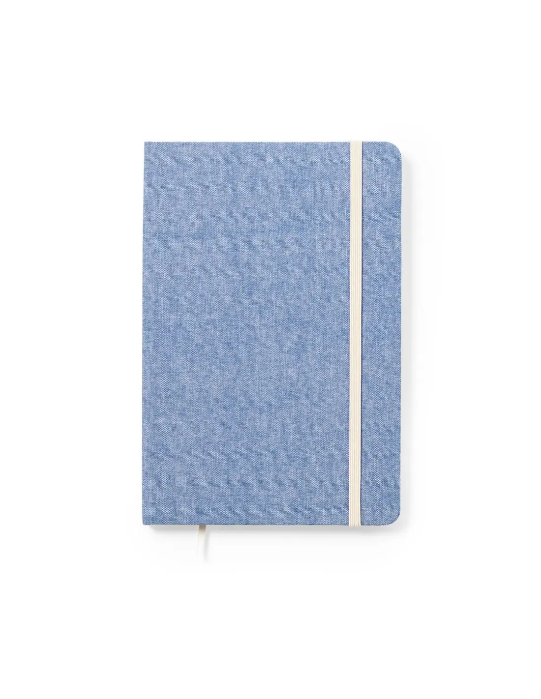 Bloc de notas de línea nature fabricado en 100% algodón reciclado. Con tapas duras y elástico de sujeción en contraste. Interior con 100 hojas lisas...