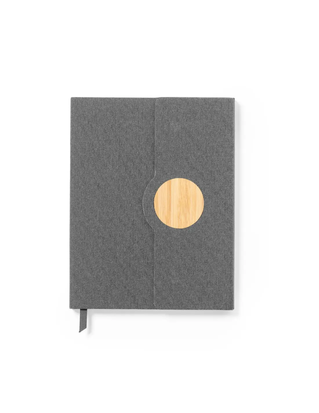 Bloc de notas desplegable de línea nature fabricado en poliéster 300D RPET. Con tapas duras y detalle en bambú en la portada. Interior desplegable con 80 hojas de disposición a una raya, marcapáginas de tela a juego y soporte para bolígrafo (bolígrafo no incluido). Disponible en variada gama de colores, con distintivo RPET en la contraportada.El material RPET se elabora a partir de plástico reciclado, para así fomentar la reutilización de residuos plásticos y ayudar a la sostenibilidad del planeta.